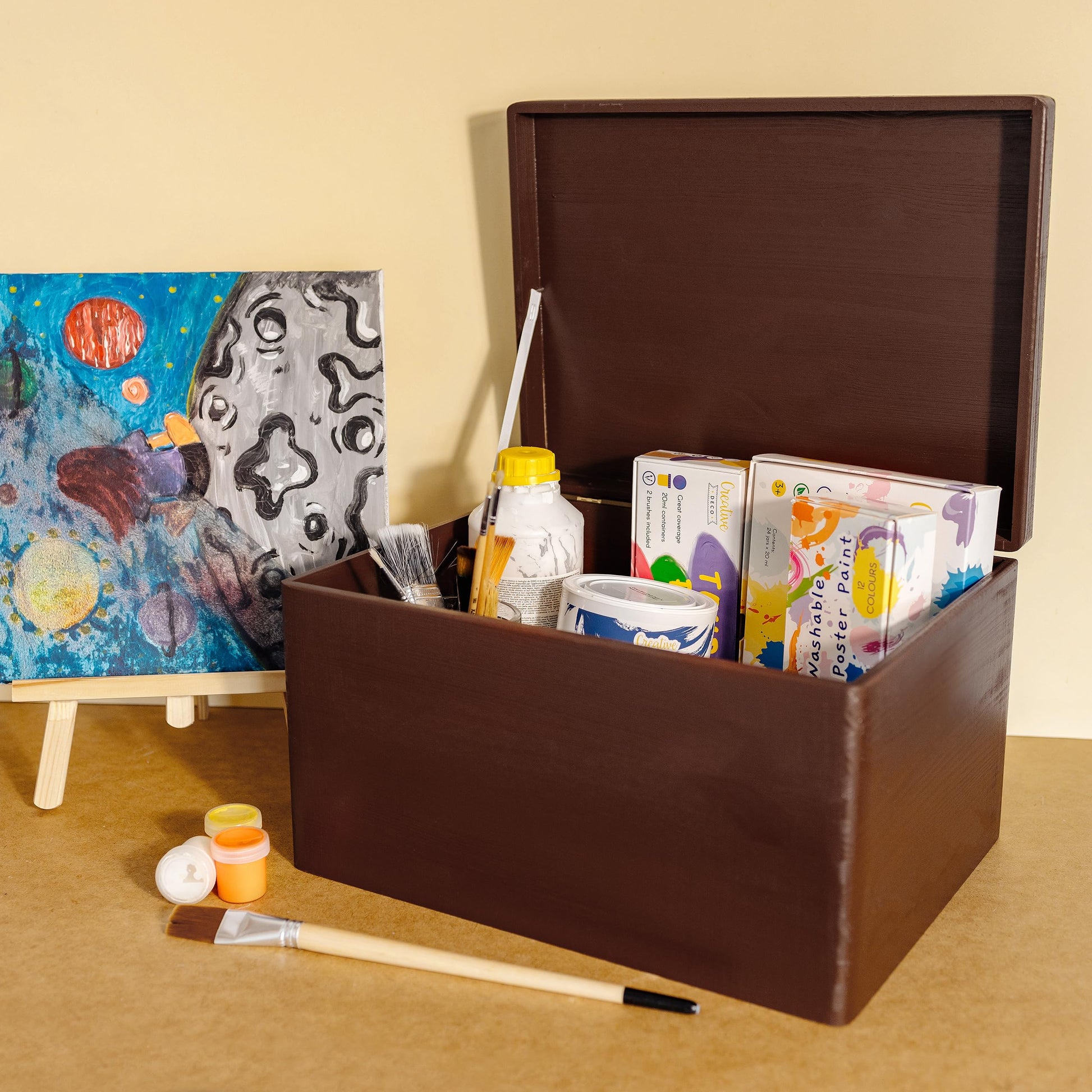 PRECISION CUTTING - with rounded edges, the storage box with lid is suitable for all age groups! Perfect for staining, painting, varnishing, pyrography, DIY, crafts, and other decoration projects! Also usable as a shoe polishing box, treasure chest, treasure chest, box, gift box, wine box, potato box, gift box, wooden box, stackable boxes, ammunition box, letter box, pharmacy box, cutlery box, wooden case, rolling box, tool box.