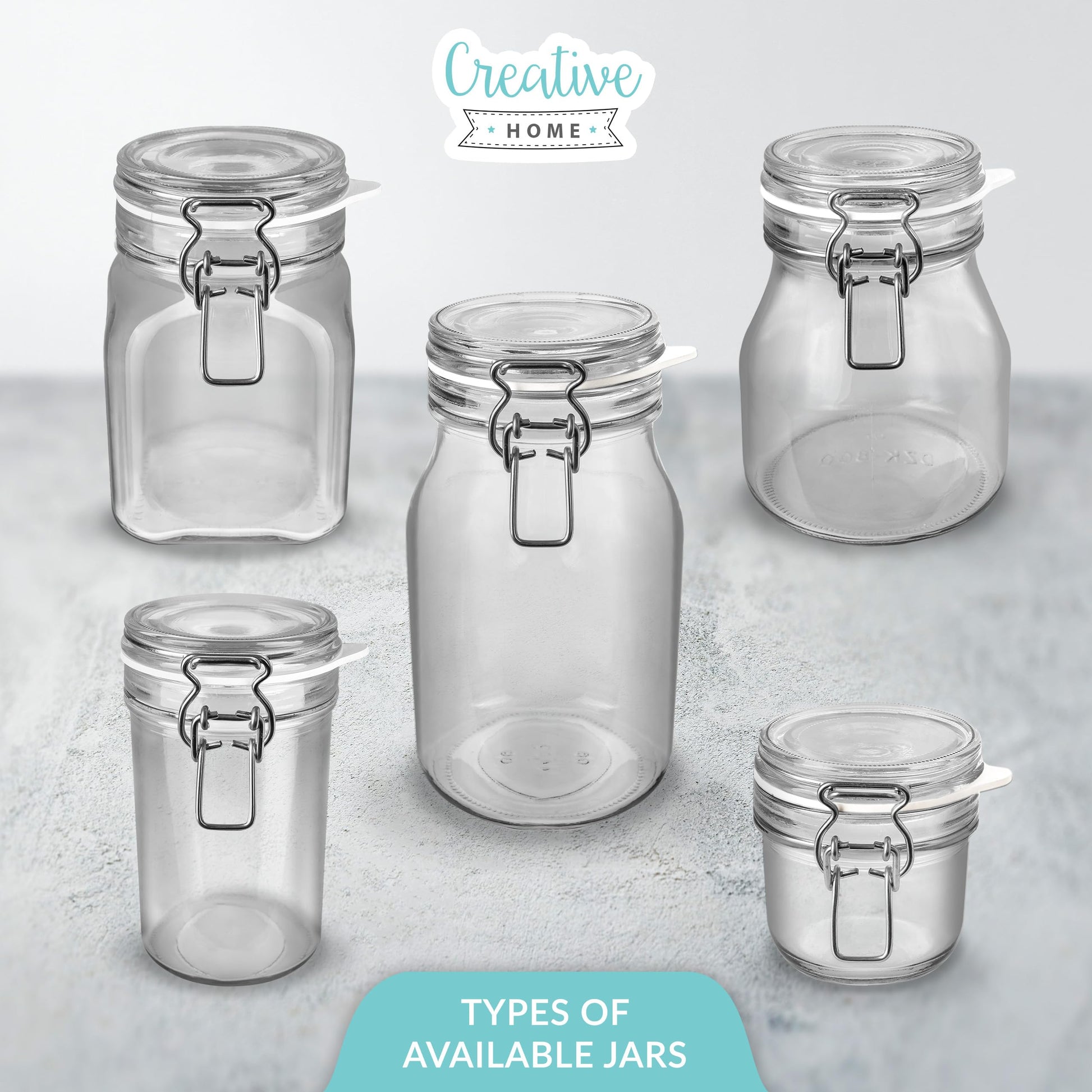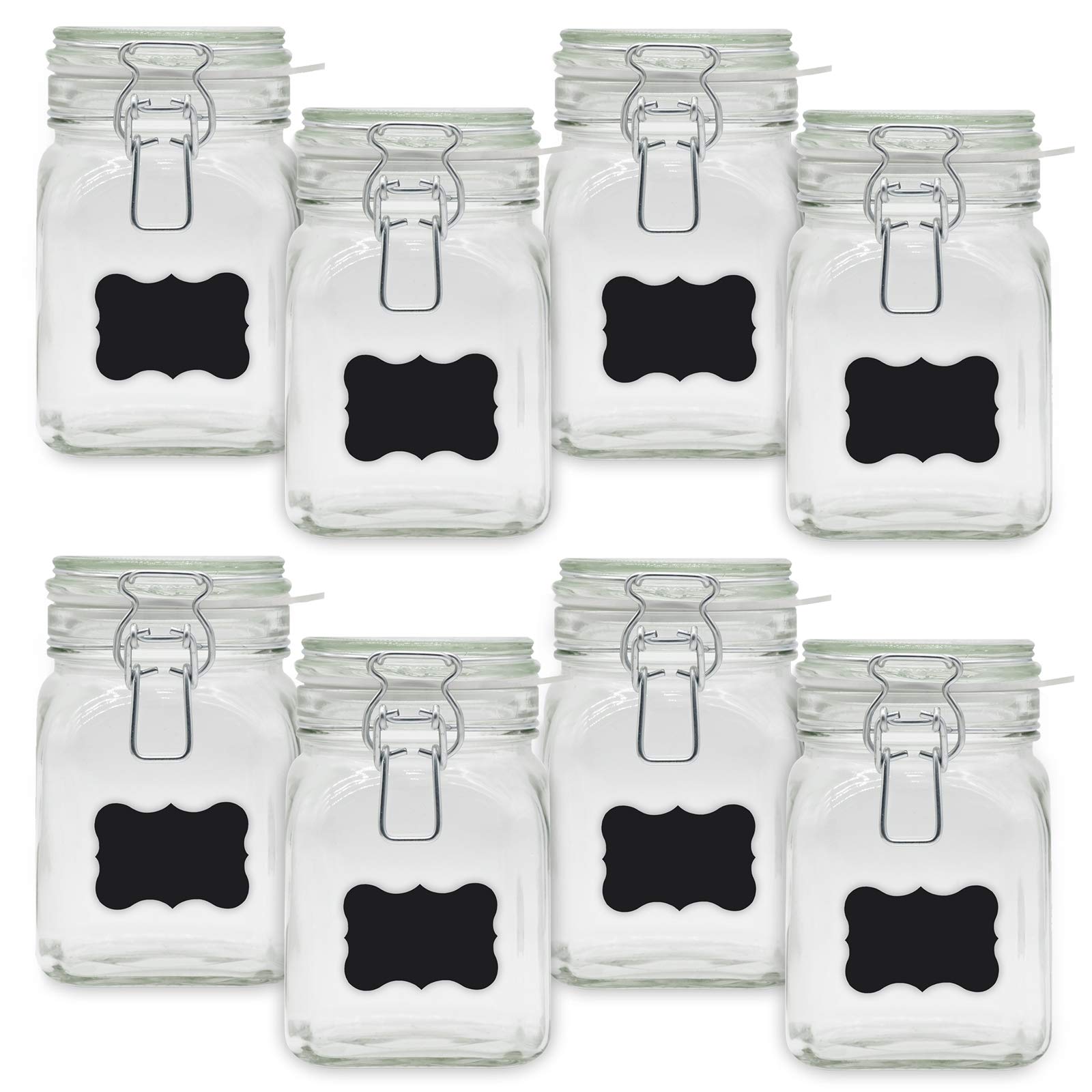 Creative Home 8 x Mason Jars with Clamp Lid | Jars 750ml | Mason Jar Canning Jars with Lid and Rubber Ring | Clamp Jar airtight | 12 Reusable Stickers + 1 Anti-Dust Chalk