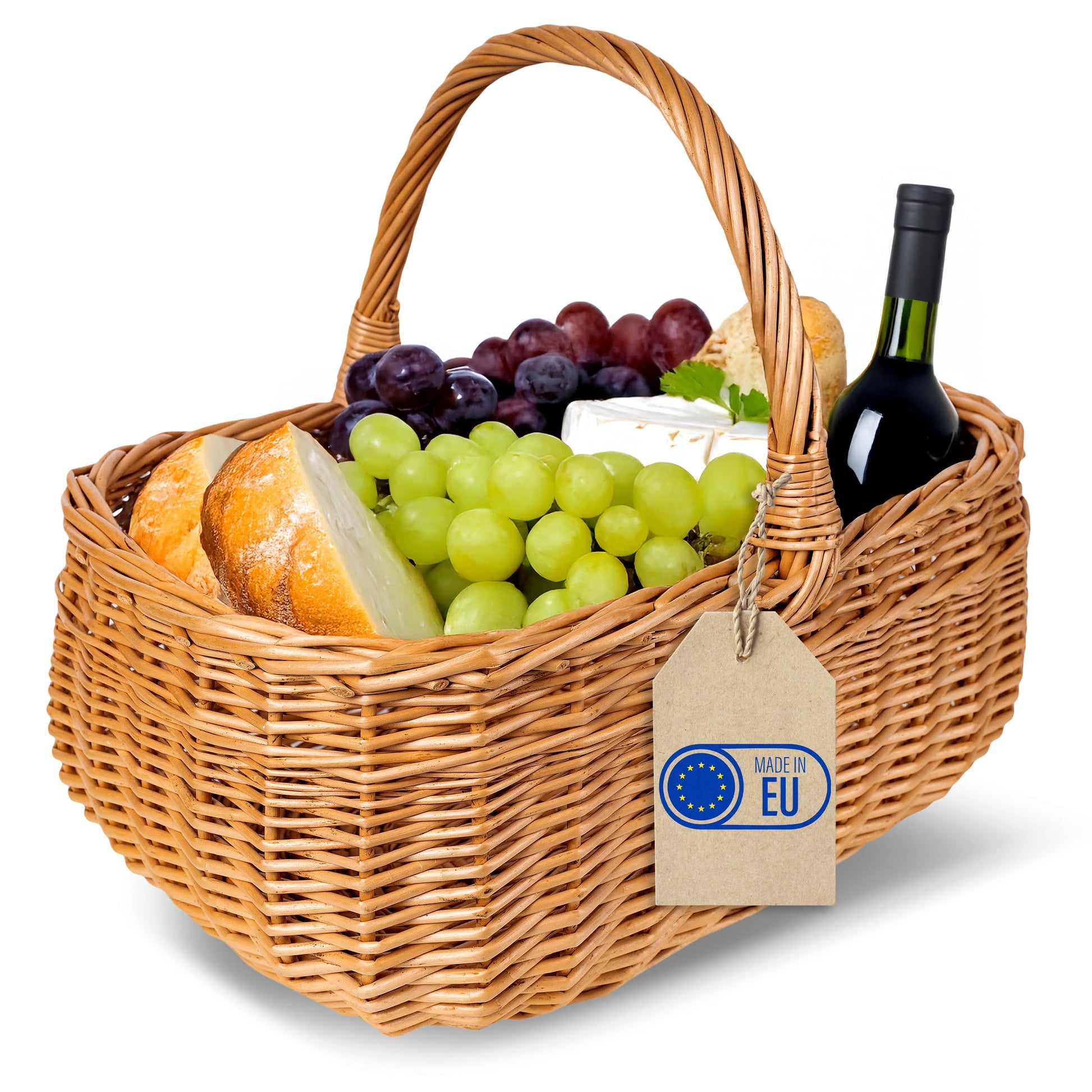 ["EXCELLENT QUALITY - The basket from Creative Home is handcrafted from 100% natural wicker, which is durable and resistant. Additionally, the basket is very convenient to carry due to its lightweight and handles.","MULTIFUNCTIONAL - The basket can be used in everyday life as both a means of transportation and decoration. It is perfect for shopping, picnics, transporting items in the car, and storing toys, magazines, or plants. With a capacity of up to 3 kg, our wicker basket is practical and stylish. To ensure its longevity, avoid exceeding the weight limit.","A USEFUL ACCESSORY FOR THE HOME - The wicker basket is a fashionable and functional home accessory. With its natural appearance and neutral brown color, it blends perfectly with any decor. It can also be used as a wicker basket, gift basket, carry basket, bread basket, handle basket, potato basket, wire basket, Easter basket, harvest basket, shopping bag, luggage carrier, gift basket.","SHOPPING FOR THE PLANET - For the sake of our planet, more and more customers are opting to use wicker baskets for their daily shopping, reducing the consumption of plastic bags. Join this significant trend with the Creative Home basket made from 100% natural wicker.","DESIGNED IN THE UK AND MADE IN THE EU - As a British brand, we source our products from the European Union, where some of the highest standards in the world apply. Therefore, we believe that we have a high-quality product on the market. Our products are made from natural and non-toxic materials."]