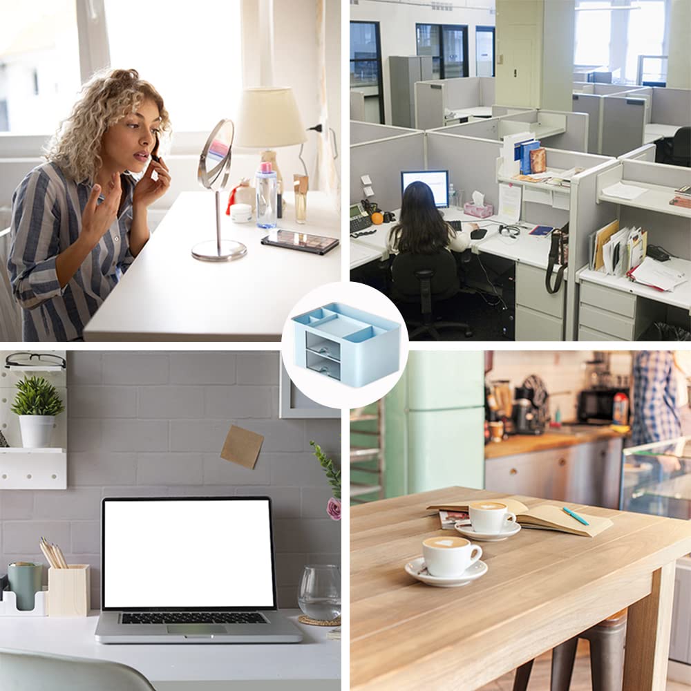 Creative & simple desk organizer, 6 compartments, plastic desk organizer with drawer, multifunctional desk organizer, pencil holder for school, office, home (Blue)