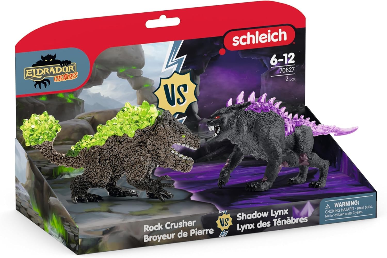 Creepy Eldrador Creatures | Shadow Lynx vs. Rock Crusher 70827 | schleich Eldrador set with crystal elements | imaginative toy | monster action figures for kids 7+ | 2 pieces