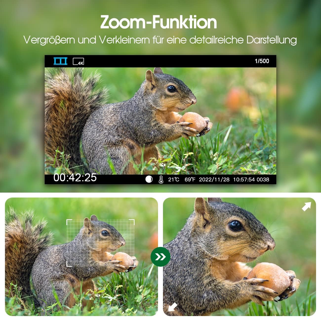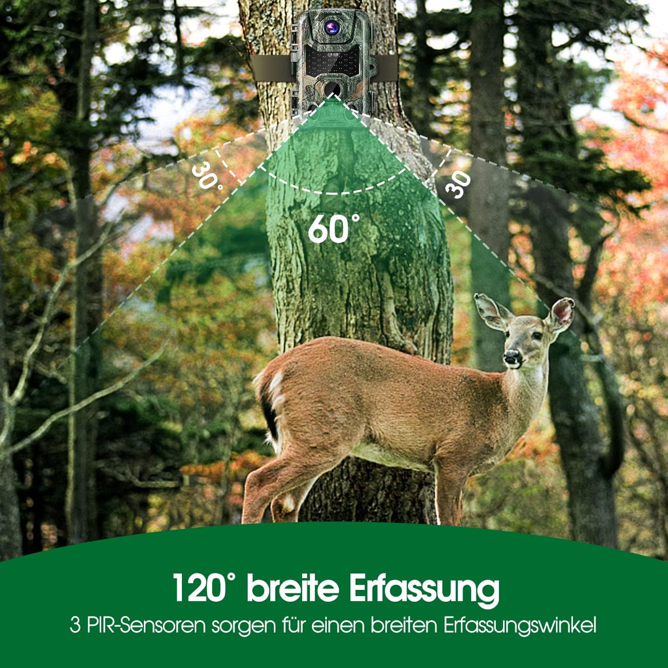 Crenova 4K 32MP wildlife camera with 32GB microSD, 940nm IR LEDs, Bluetooth, motion sensor, night vision, game camera, wildlife camera, IP66, forest camera, wireless transmission.