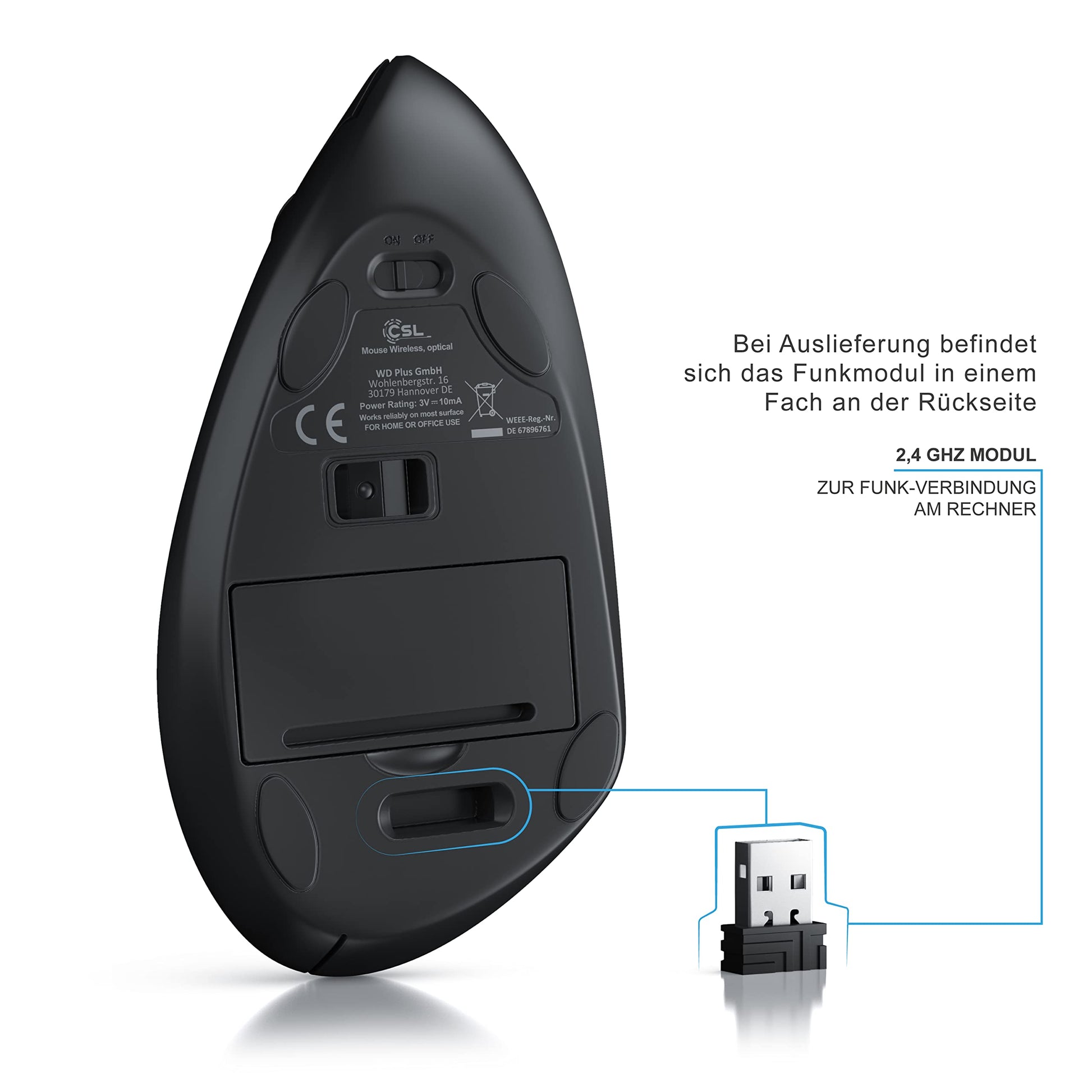 CSL - Optical wireless mouse - vertical design - ergonomic - prevents mouse arm and tennis elbow - gentle on the arm - 5 buttons