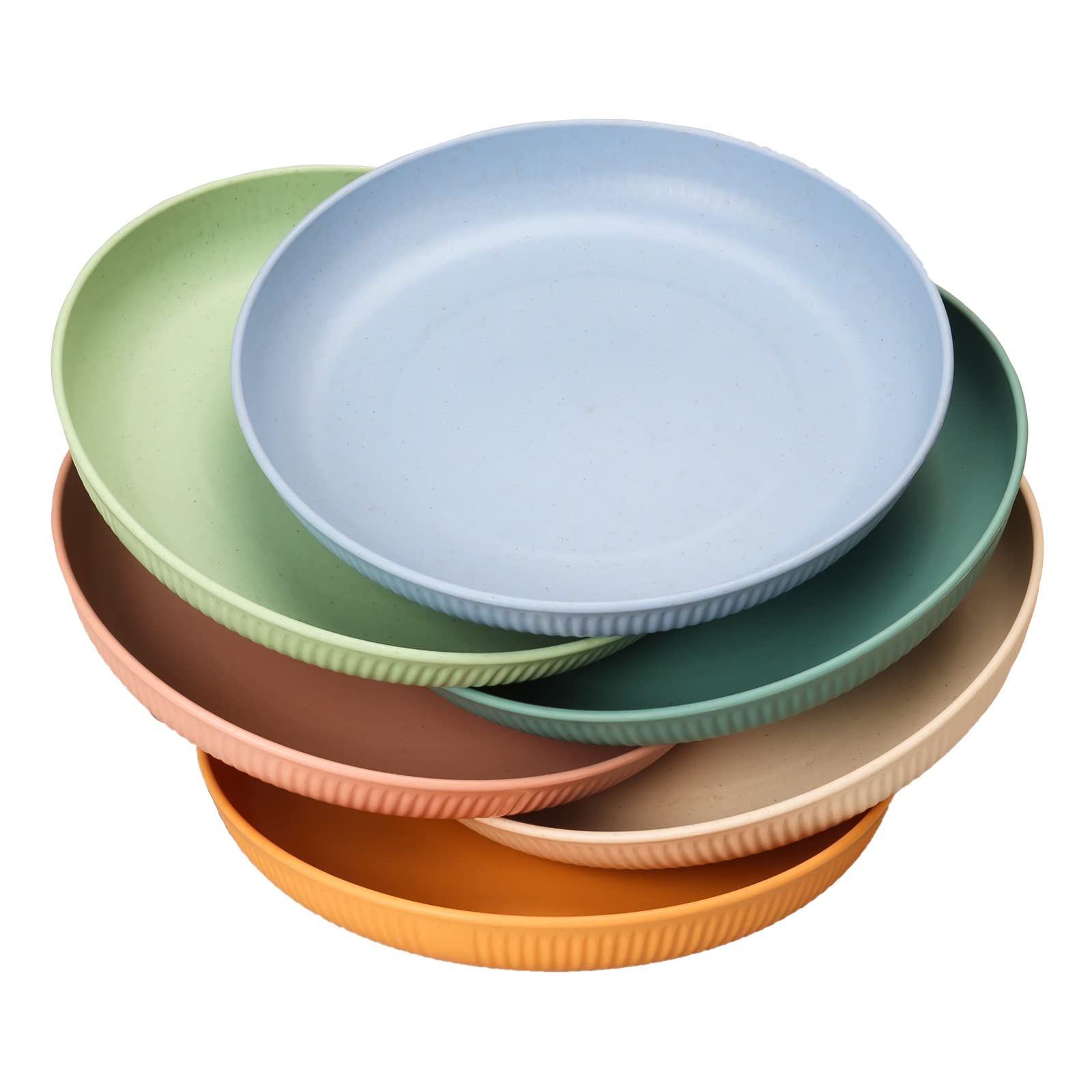 CSYY 6 Piece Plates, Unbreakable Dinner Plate Set, Deep Plastic Picnic Plate Set 22.5cm/9inch Camping Plates for Salad Pasta Party Home Microwave and Dishwasher Safe