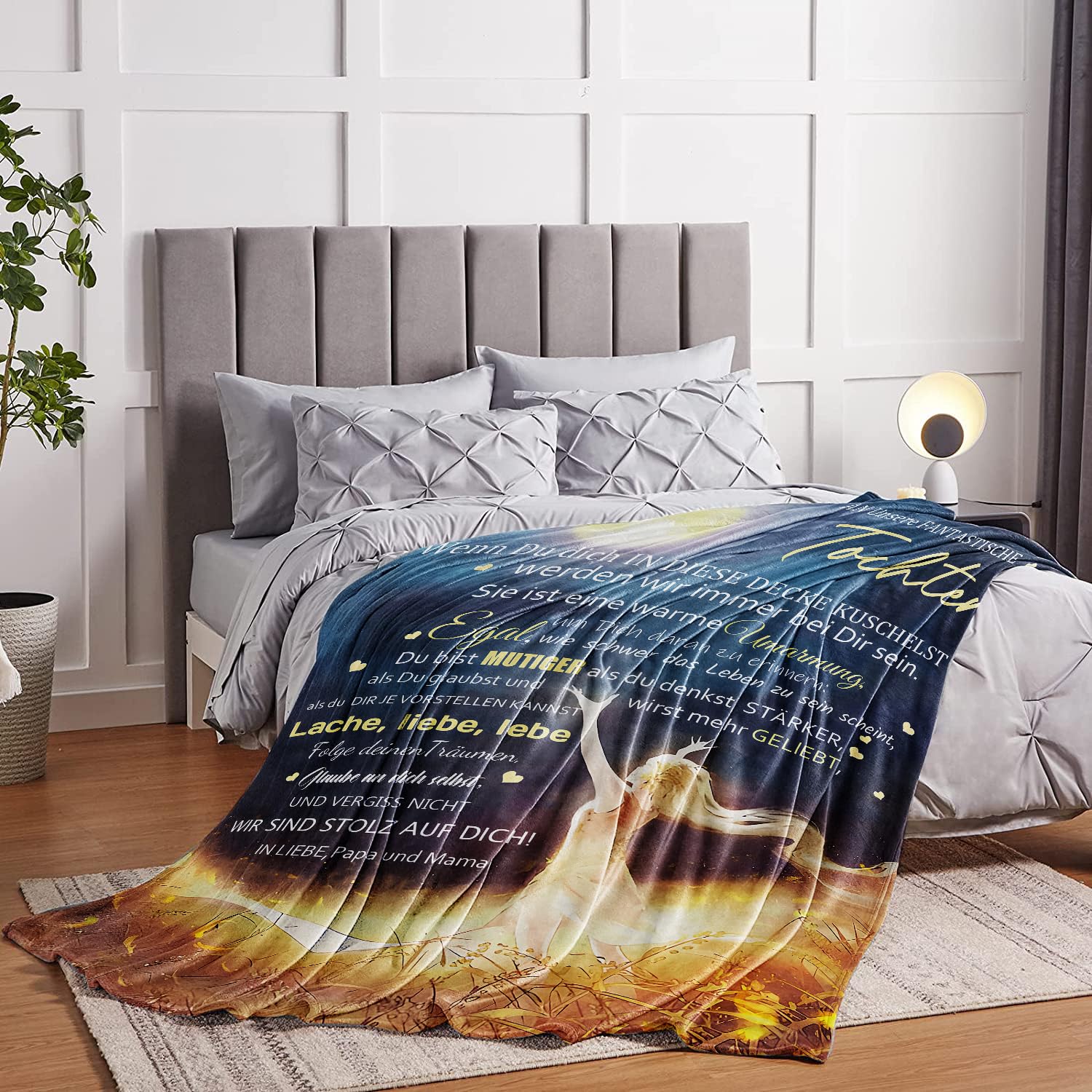 Cuddle blanket fluffy to our daughter from parents, Personalized gifts blanket German Mom and Dad to Daughter Coverlet Positively Encourage Fleece blanket Throw blanket Sofa blanket (150×200cm)