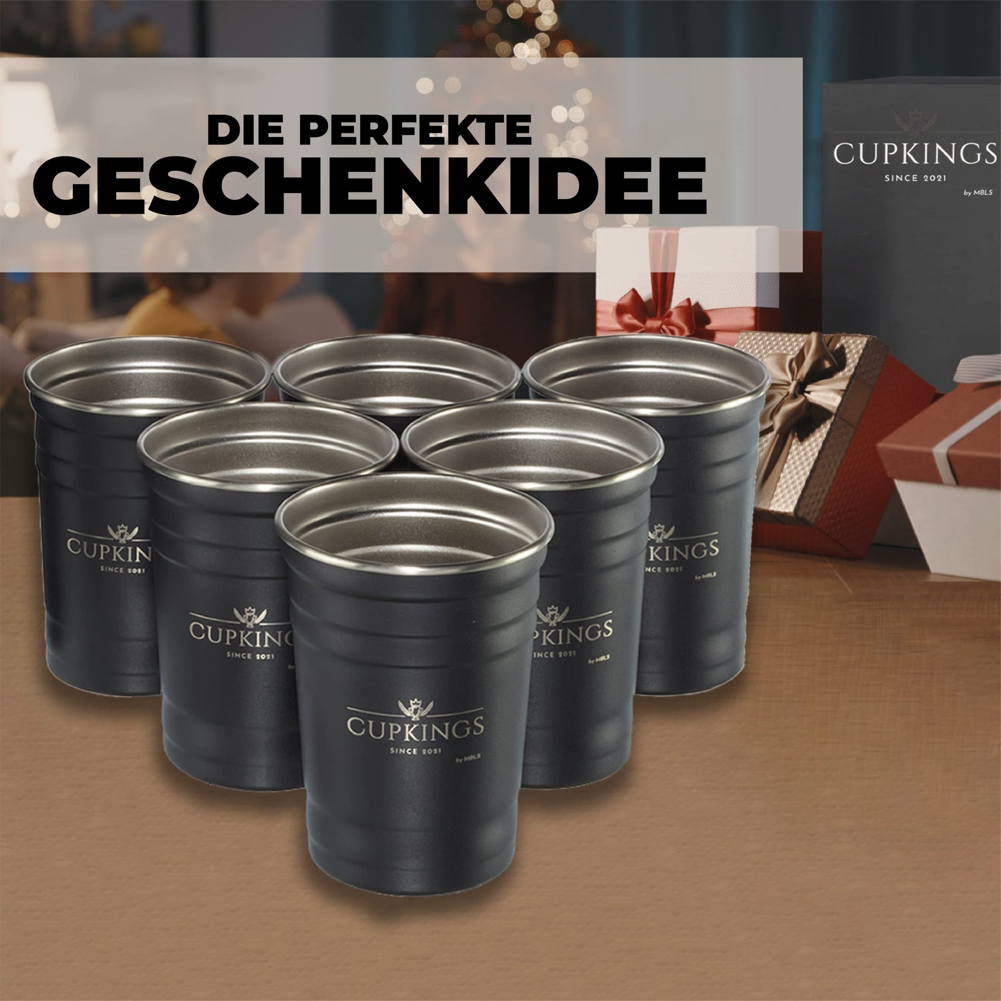 ["✅HIGH QUALITY: Our CUPKINGS Beer Pong cups are made of high-quality stainless steel and provide optimal fun with the \"edgy\" design.","✅SUSTAINABILITY: Stainless steel cups significantly reduce plastic waste compared to traditional beer pong cups. At the same time, our cups are sturdy, making them exceptionally durable.","✅FOR ANY OCCASION: The CUPKINGS beer pong cups are versatile for any occasion. Whether it's a party, birthday, or beer pong match in the park - our party cups are always ready for action.","✅OPTIMAL DRINKING EXPERIENCE: Thanks to the stainless steel, your beer stays cool and enjoyable even during exciting matches. A unique drinking experience like never before.","✅GIFT IDEA: Our reusable beer pong cup set is perfect as a gift and is a real eye-catcher at any party, a must-have for the next celebration!"]
