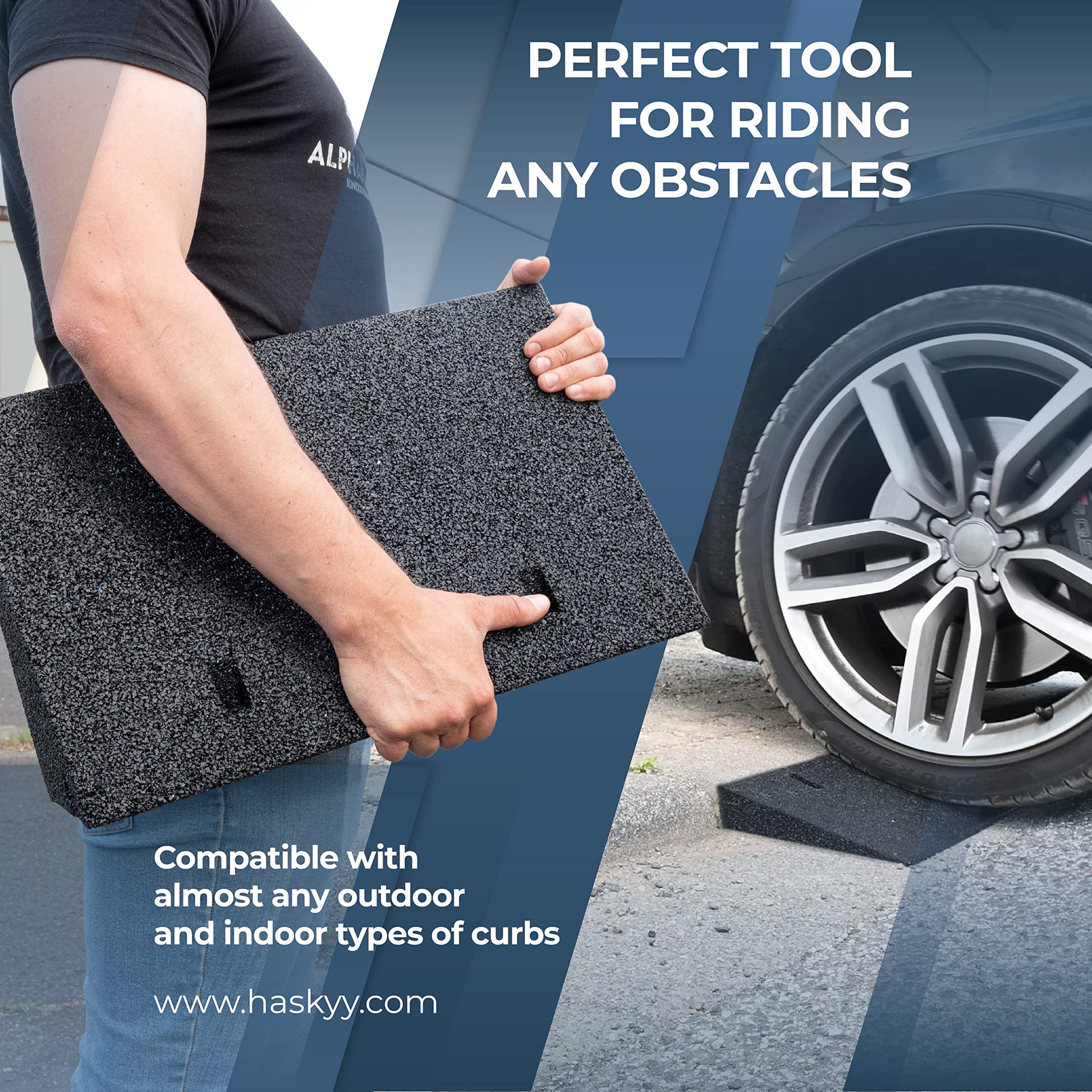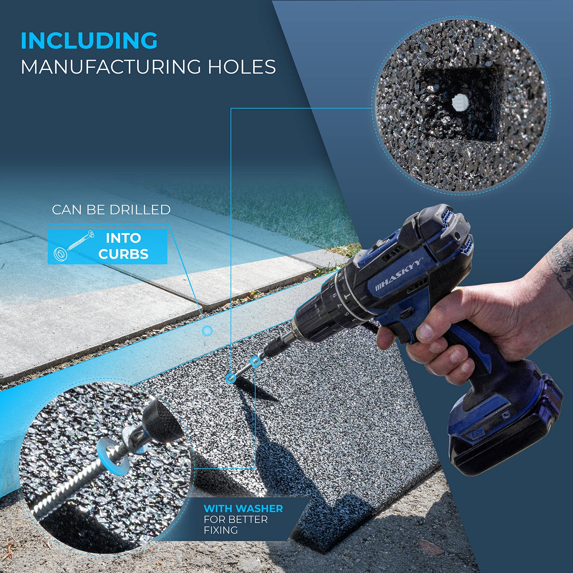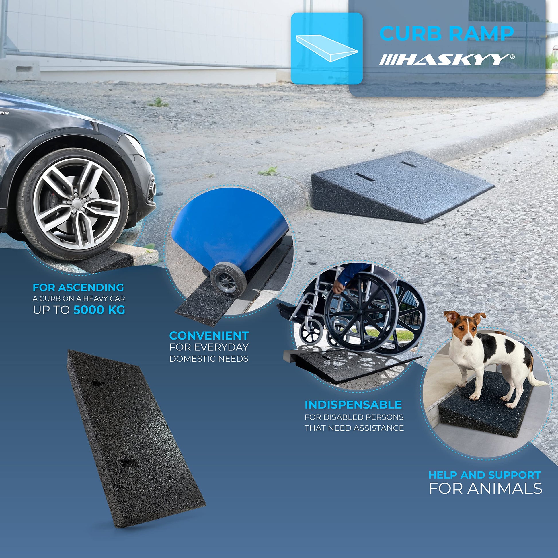 "EXZELLENTE VERARBEITUNG - Curb ramp made of 100% recyclable rubber granulate. High load capacity: Max. 5 tons per tire"