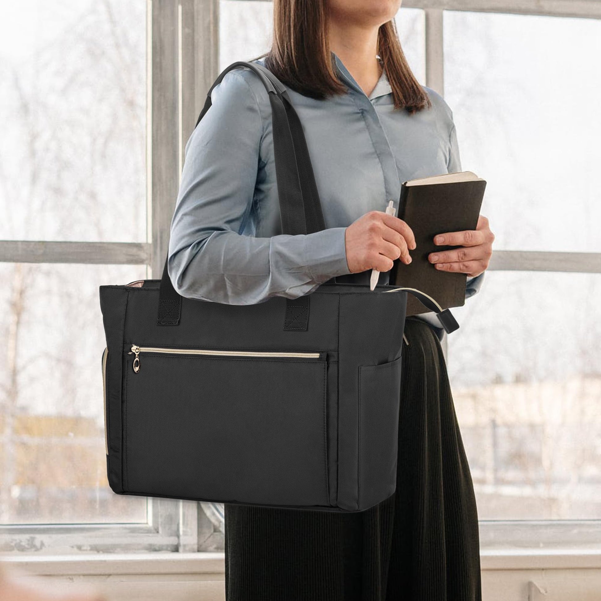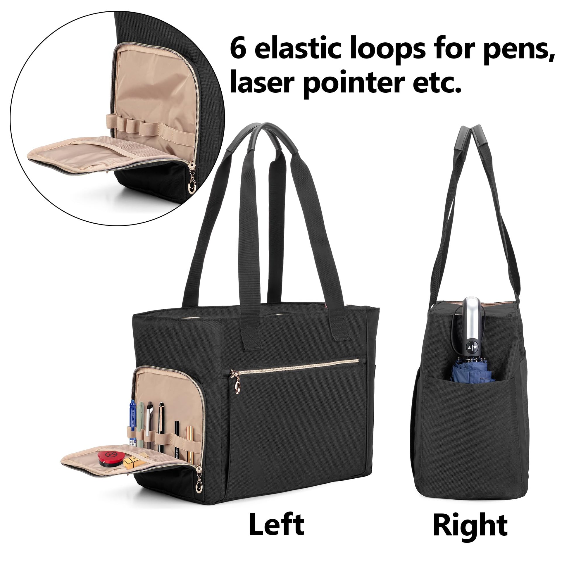 CURMIO Teacher Work Bag for Women, Portable Teacher Tote with Padded Sleeve, Briefcase with Compartments for Laptop, School Supplies, Teacher Supplies, Empty Bag, Black