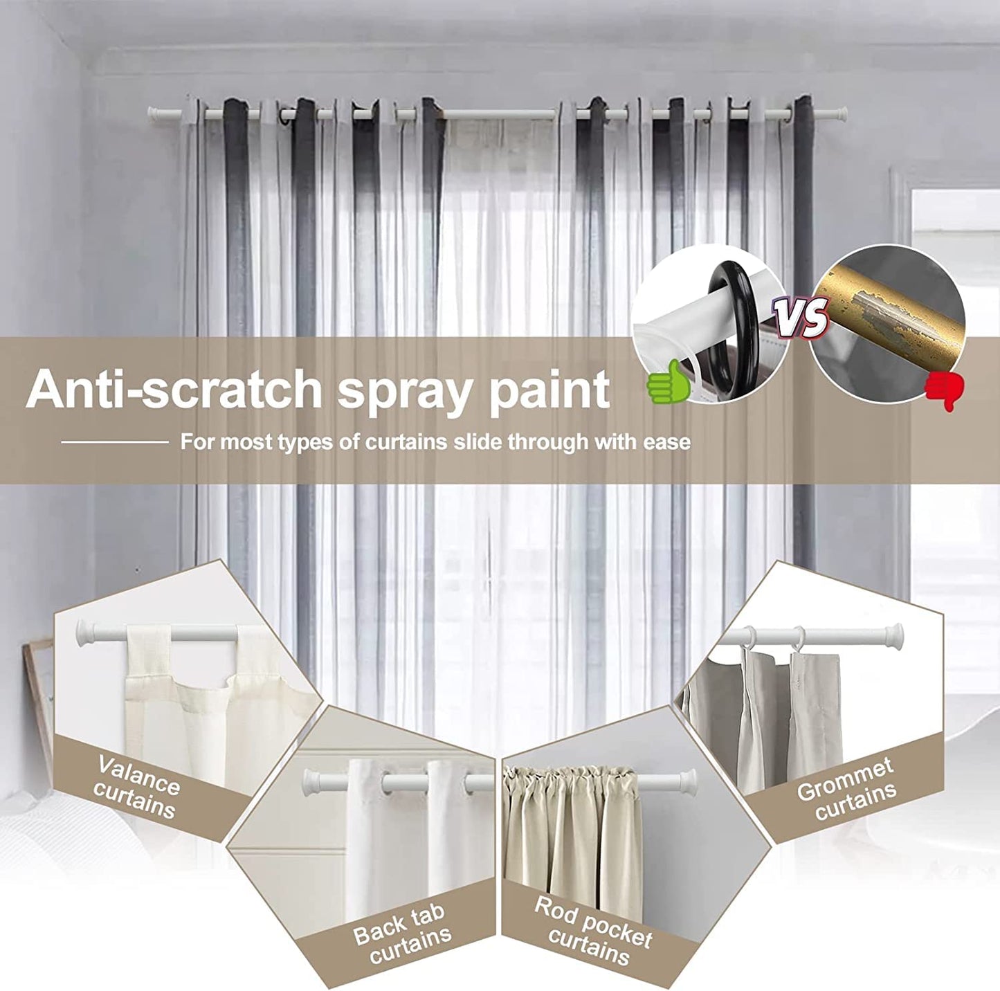 ["【Premium Material】Our window curtain rods made of stainless steel, waterproof and rustproof. The matte black curtain rod can serve you for a long time.","【Curtain Rod Splicing】Curtain rods with a diameter of 16 mm consist of multiple 40 cm long screw-in extension rods. There is an additional 19 cm rod with an end piece that fits windows of different sizes.","【Flat End Cap】The simple design of the flat end cap sets it apart from the traditional round end cap rod, perfect for all types of tight spaces and offering an visually unique and modern style.","【Set Included】Our curtain rods come with mounting hardware, including rods, brackets, screws, anchors, and instructions, as well as additional plastic rings for noise reduction.","【Premium Service】All our curtain rod sets for indoor and outdoor use come with a three-year quality assurance and strive for 100% customer satisfaction. Please contact us if you have any questions."]