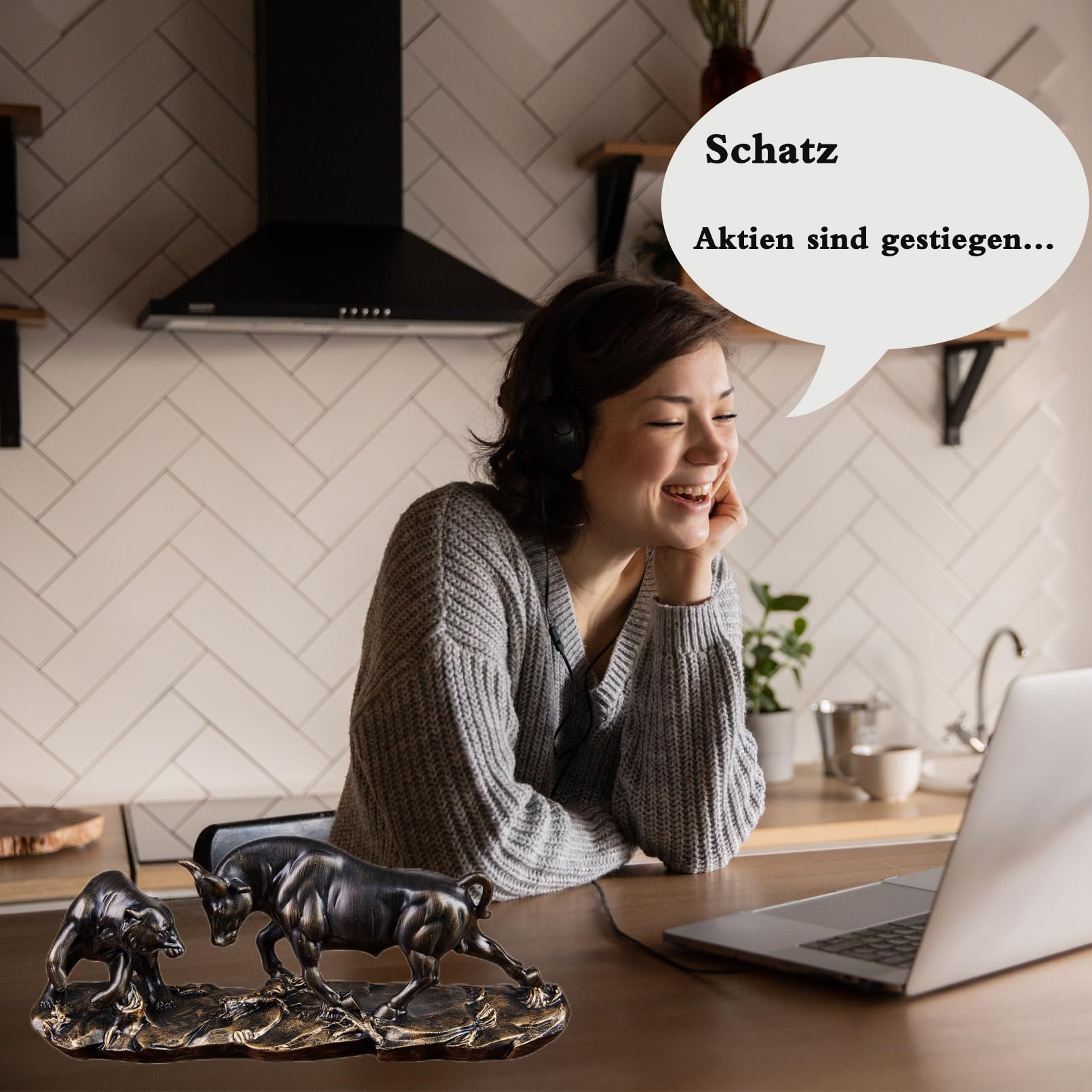 Application: These Golden Bull & Bear Statues are a perfect decorative piece for any home or office. They also make great gifts for anyone with a sense of style and class. Whether displayed on a shelf or as a centerpiece on a desk, these statues will surely be admired.