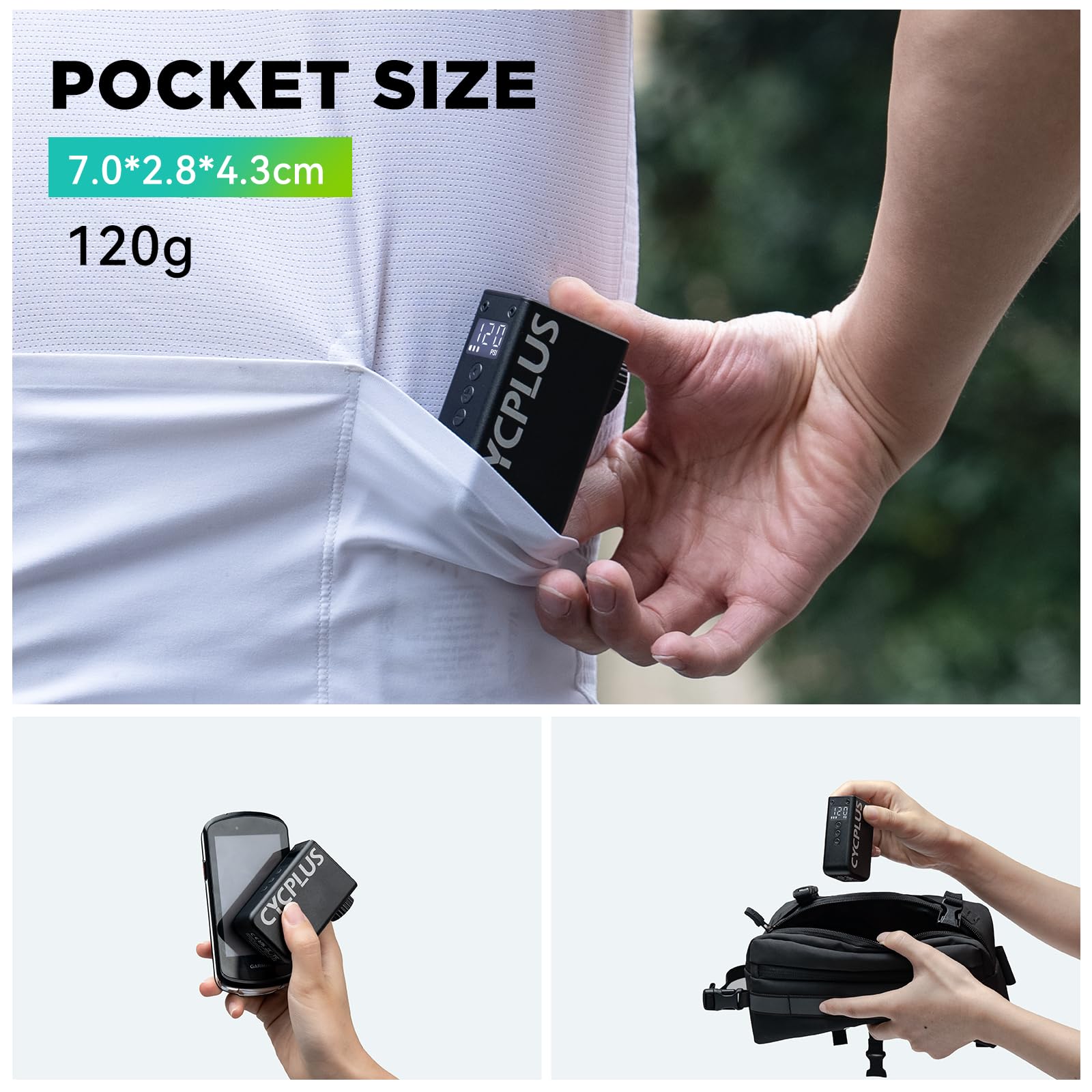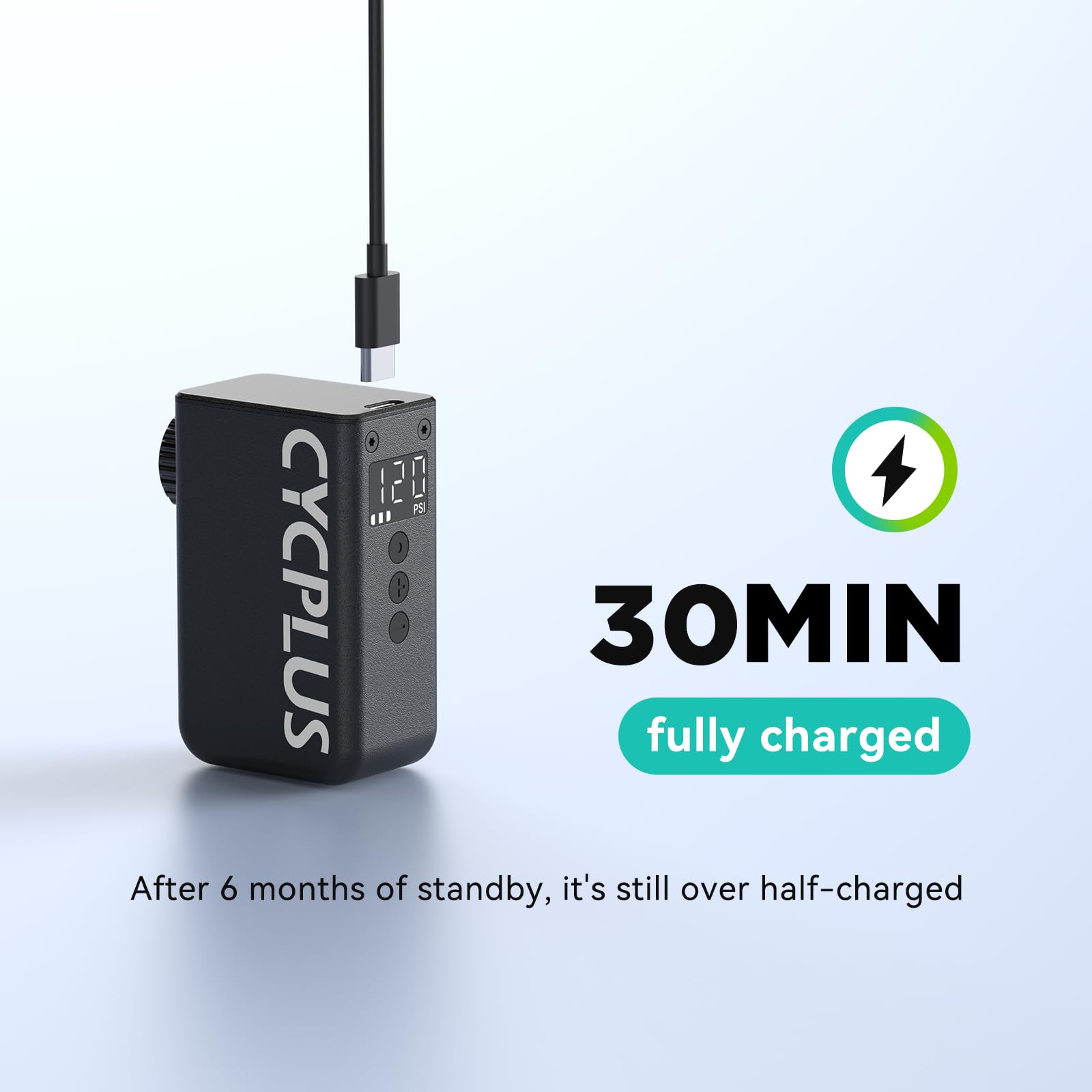 CYCPLUS AS2 PRO Tiny Bike Pump with Gauge, max 120 PSI Electric Bike Pump, automatic shut-off, with Presta and Schrader valve for e-bike, mountain bike, city bike, and road bike (2025 version)