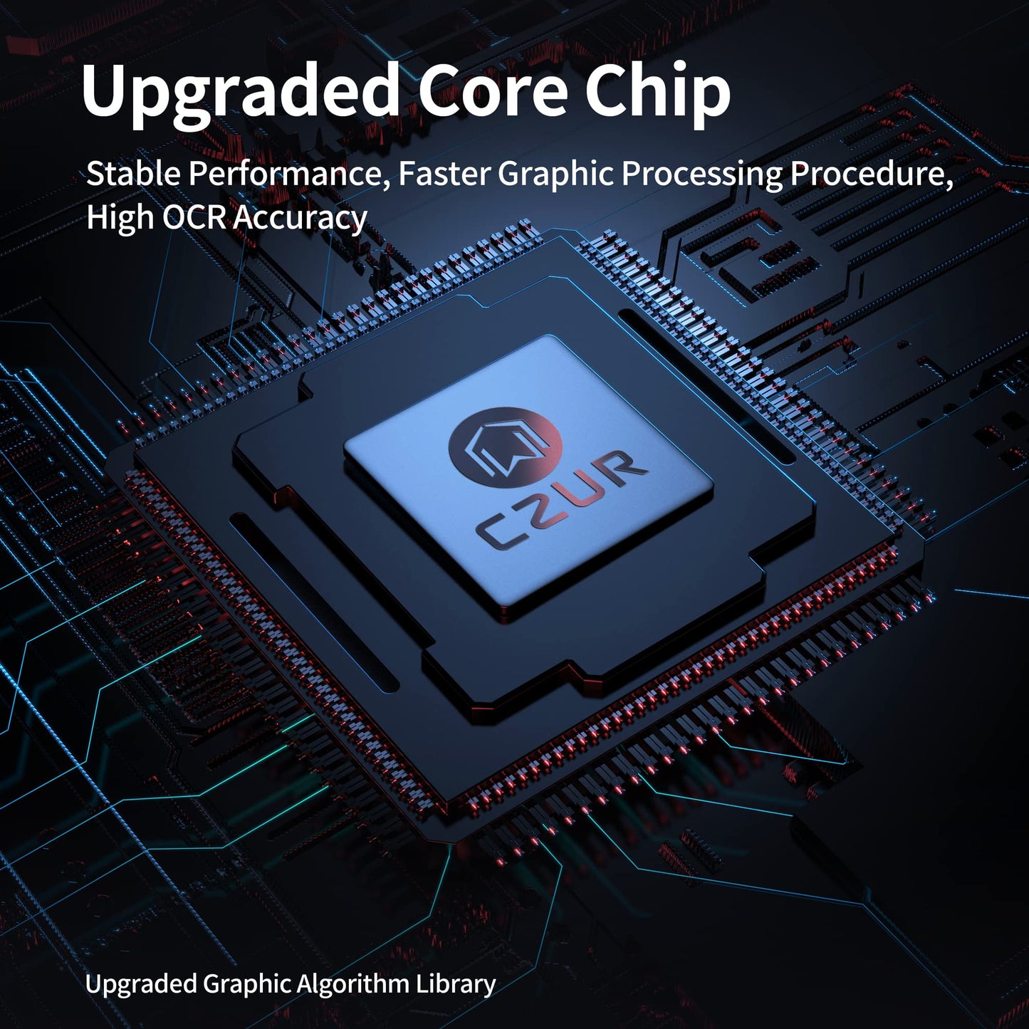 "High-Resolution Scanner: The CZUR ET24 Pro document scanner offers a resolution of 24 megapixels, 320 DPI, and 5696x4272 pixels at 24 bits. With an upgraded processor, the performance is more stable, image processing is faster, and OCR accuracy is higher. The CZUR software is easy to use - just enter the device number and start scanning.