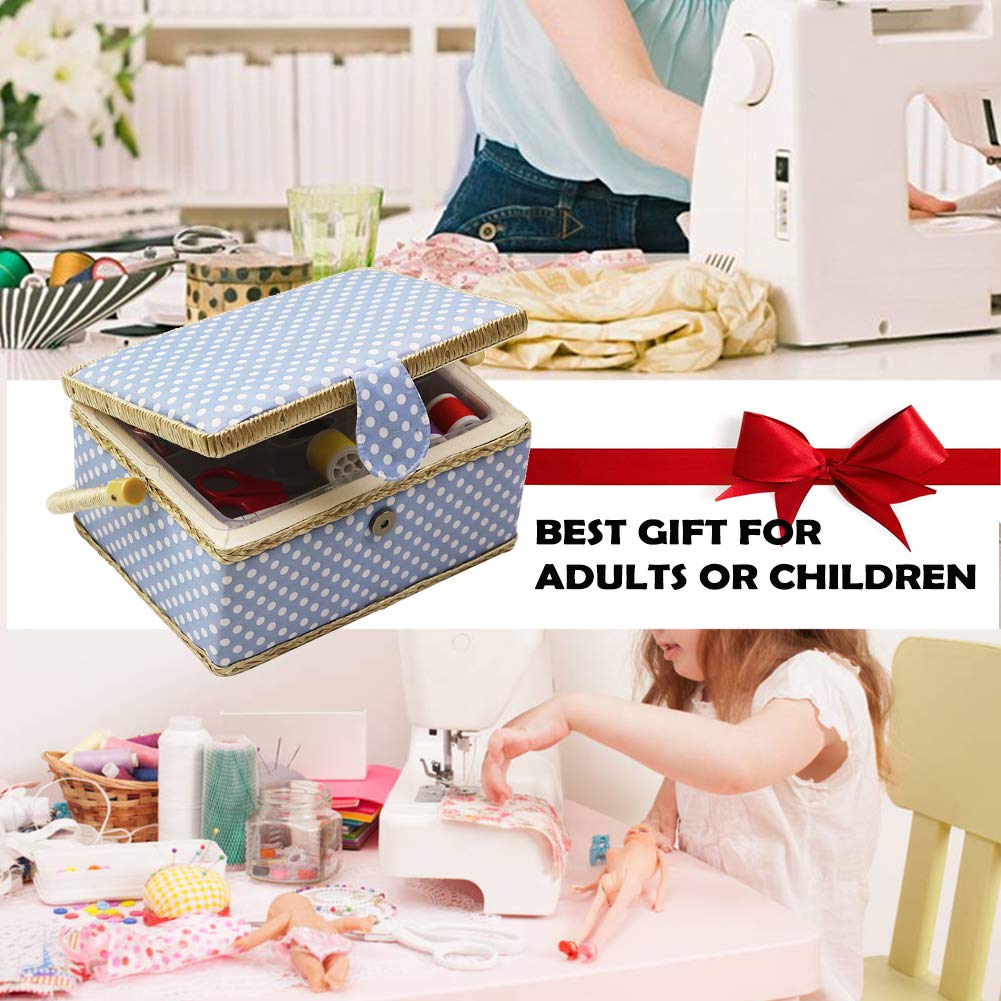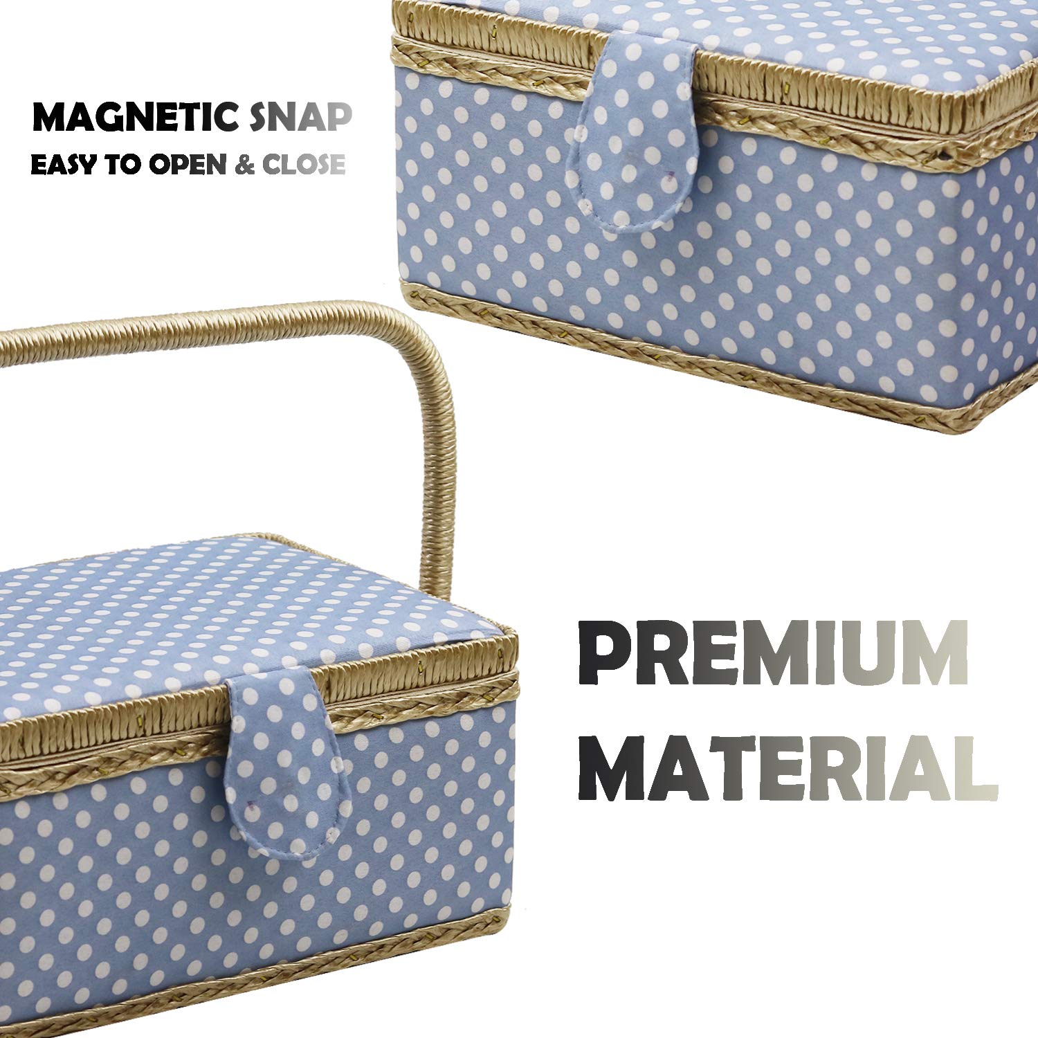 D & D sewing kit basket for home, storage and organization, portable, for needles, thread etc., sewing basket with accessories M blue