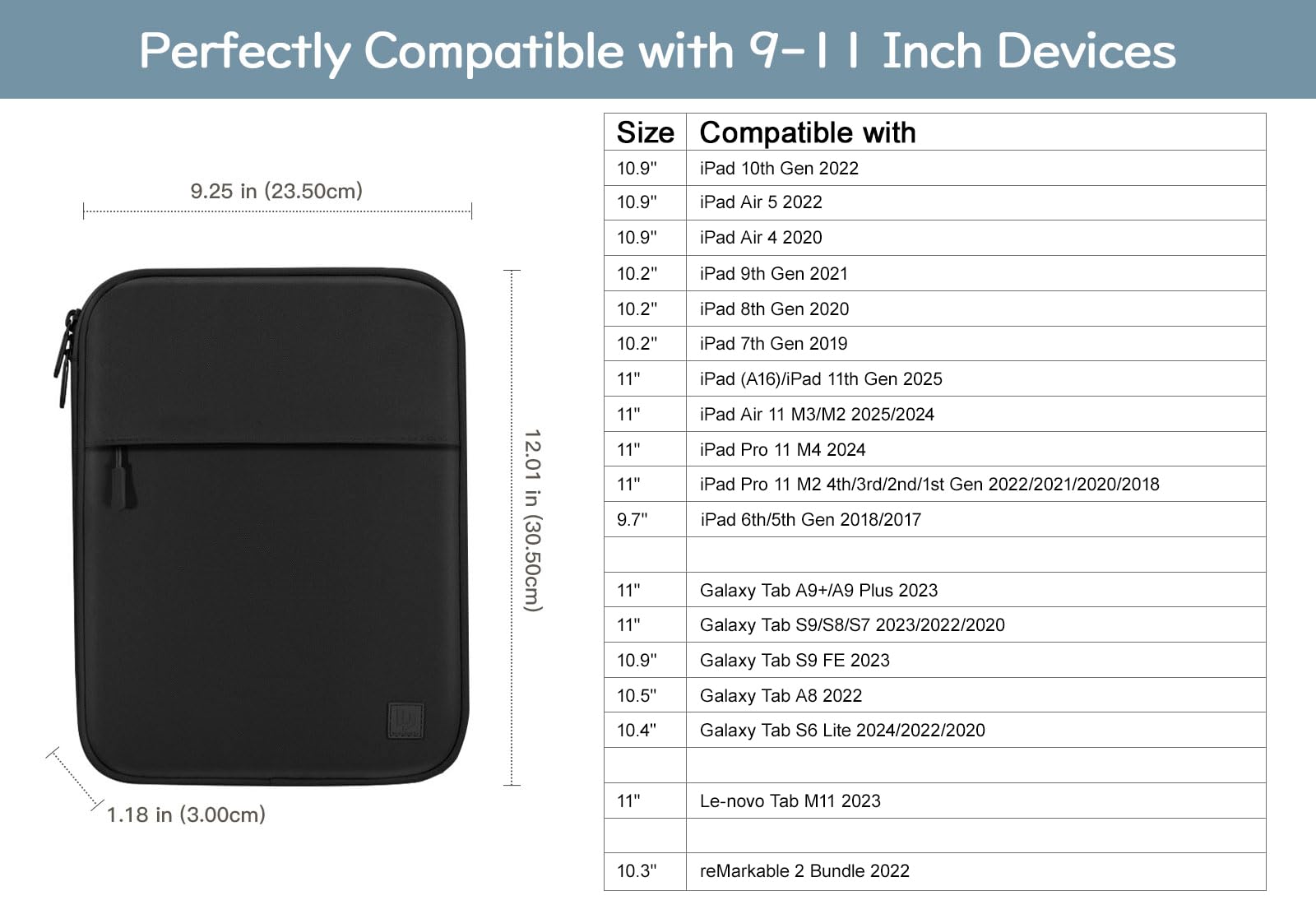 "Compatibility: Dadanism Tablet Case is suitable for most 9-11'' tablets, such as iPad Pro 11" M4 2024, iPad Pro 11" M2 4. 3. 2. 1. Gen, iPad Air 11" M3 M2 2025 2024, iPad (A16) iPad 11. Gen 11", iPad 10. Gen 10.9" 2022, iPad 9. 8. 7. Gen 10.2", iPad Air 5 4 10.9"; Galaxy Tab A9+ Plus 11" 2023, Galaxy Tab S9 FE 10.9", Galaxy Tab A8 10.5", Galaxy Tab S6 Lite 10.4", Galaxy Tab S9 S8 S7 11"; Tab M11 11", Tab M10 (3. Gen) 10.1"; reMarkable 2 10.3" etc.