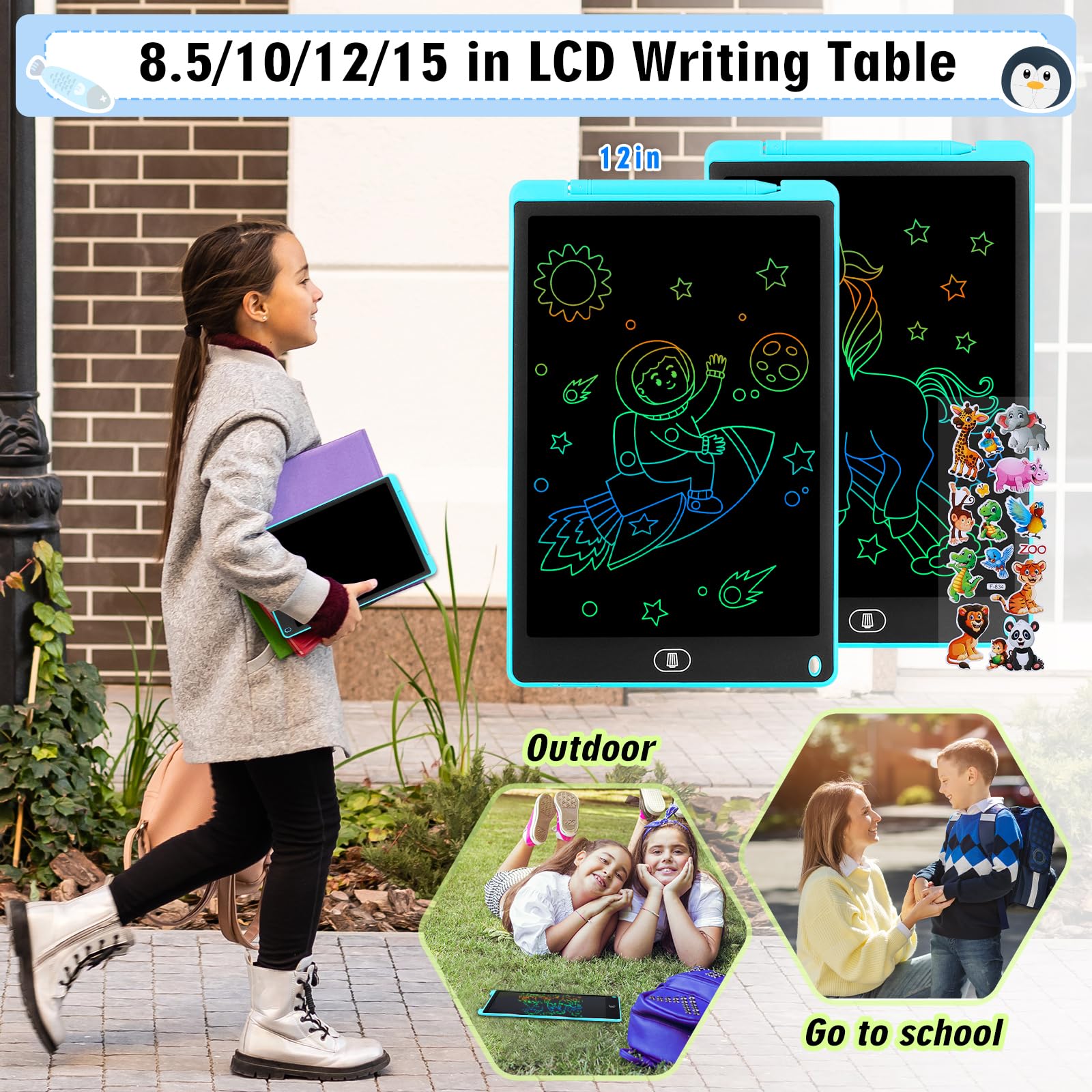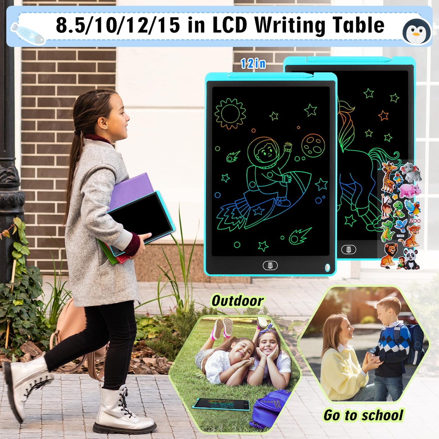 ["2 Packs LCD Writing Tablet for Kids + Animal Stickers: Let children develop their creativity and imagination! The LCD screen has no blue light, the light is soft and protects the eyes. Don't worry about children's eyes being damaged by watching TV or computer for a long time!","Interesting Magic Drawing Board: This writing tablet for kids is like an endless piece of paper, providing you with fun writing and drawing. You can draw, write, doodle, take notes, even use it as a notepad in the office or as a message board at home.","EASY TO USE AND BEAUTIFUL DESIGN: The LCD writing tablet features pressure-sensitive technology to create colorful lines of different thickness depending on how hard you press with a pen or fingernail, just like writing and drawing on paper. Press the lock button to lock, effectively preventing accidental deletion and erasing the pattern after unlocking. Quick erase with just one button, convenient and time-saving!","READY FOR DRAWING: The durable plastic LCD writing tablet doodle board is portable and fits easily in backpacks, purses, and travel bags. The drawing pad is waterproof and drop-resistant, suitable for many occasions: cars, planes, outdoor places.","Gift for Kids: LCD Writing Tablet, it is a good partner for children, an attractive toy for children that can not only stimulate their creativity but also promote parent-child interaction. Suitable as a variety of holiday gifts, including school office, birthdays, Thanksgiving, Easter, Christmas, Valentine's Day, and more."]
