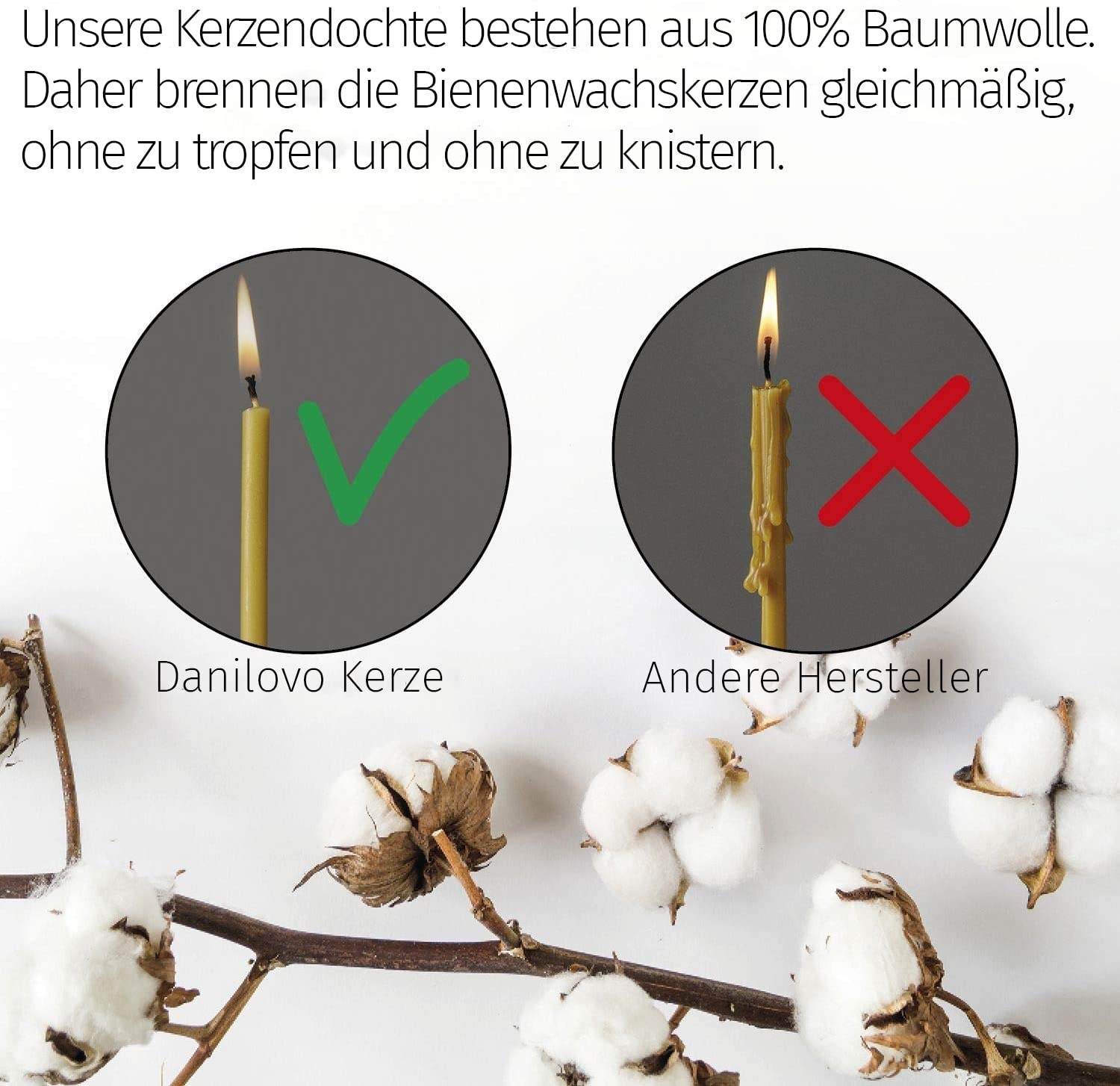 "MADE FROM BEESWAX: Always choose candles made of 100% pure honeycomb beeswax for meditations, rituals, and romantic occasions. The thin Danilovo candles with cotton wick are made of the purest, non-toxic beeswax.",