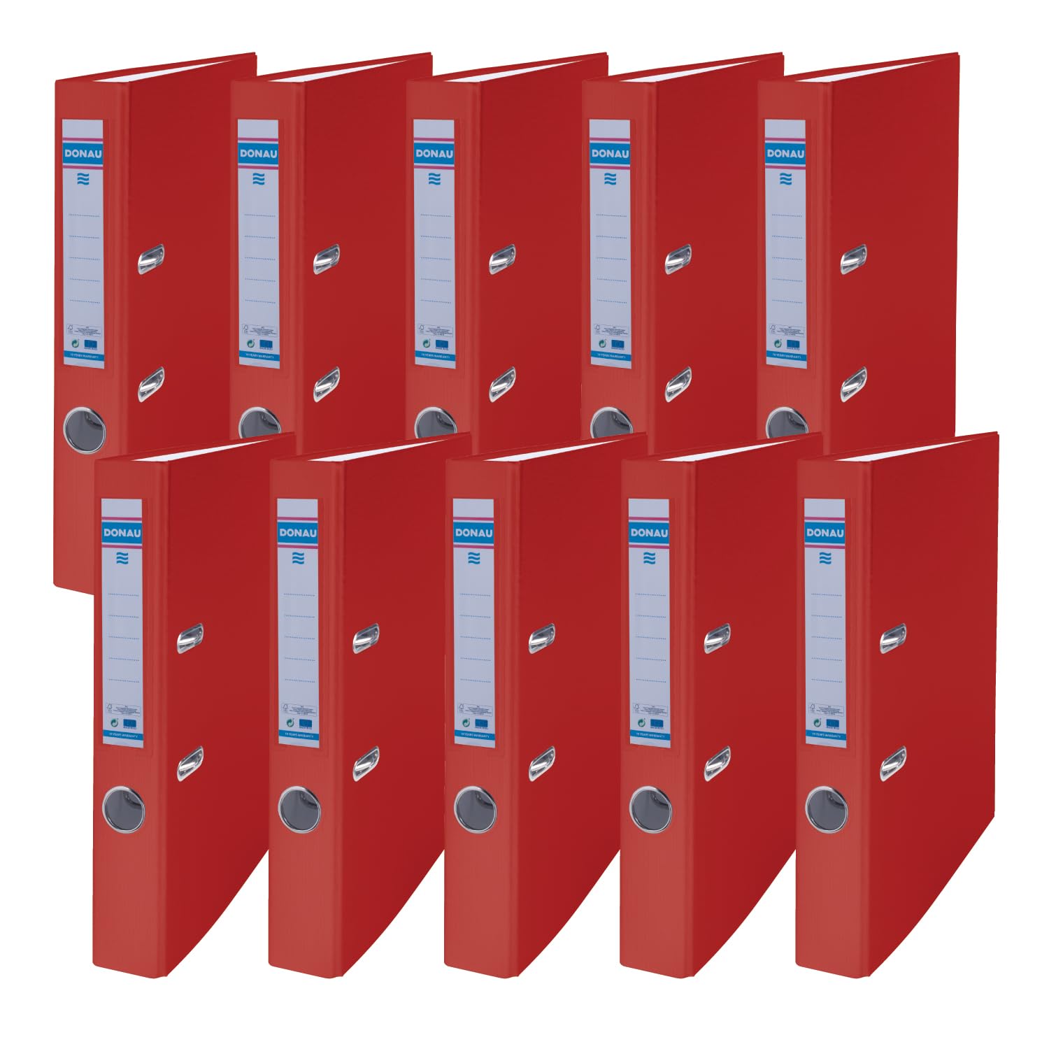 ["DONAU 3950910PL-04 - Master Folder Slim/ Letter Size / 2 inch - 50 mm / Pack of 10 - 10 pieces. Color - Red","High-quality lever with pressure load","Replaceable double-sided back label","Reinforced finger hole","High-quality folder made of 2.1 mm thick cardboard with a density of 1290 GSM Folder/ Office folder/ File folder/ Spine width: 50 mm, Dimensions: 50 x 320 x 285 mm, Color: Red","Marked with the Green Dot - Participation in the recycling and recovery system resulting from the provisions of Polish and EU law","Coated on both sides with eco-friendly polypropylene film (100 µm)/ Plastic cover PP/Paper with the texture of a linen cloth","FSC certification ensures that the raw material required for the product's manufacturing comes from responsibly managed forests; it promotes sustainable forestry based on the world's highest conservation standards and ensures the legality of the raw material's origin"]