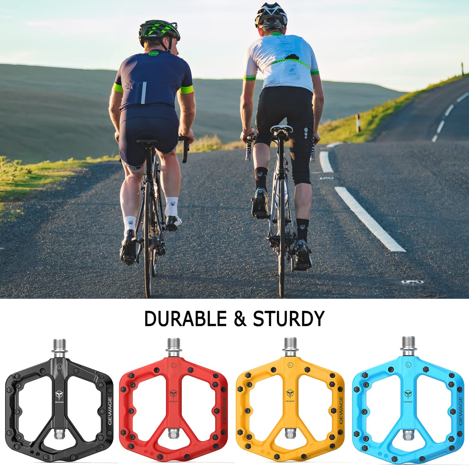 "【Durable and stable】: The mountain bike pedals are made of nylon composite material and a CR-MO steel spindle, which is shockproof, abrasion and corrosion resistant.