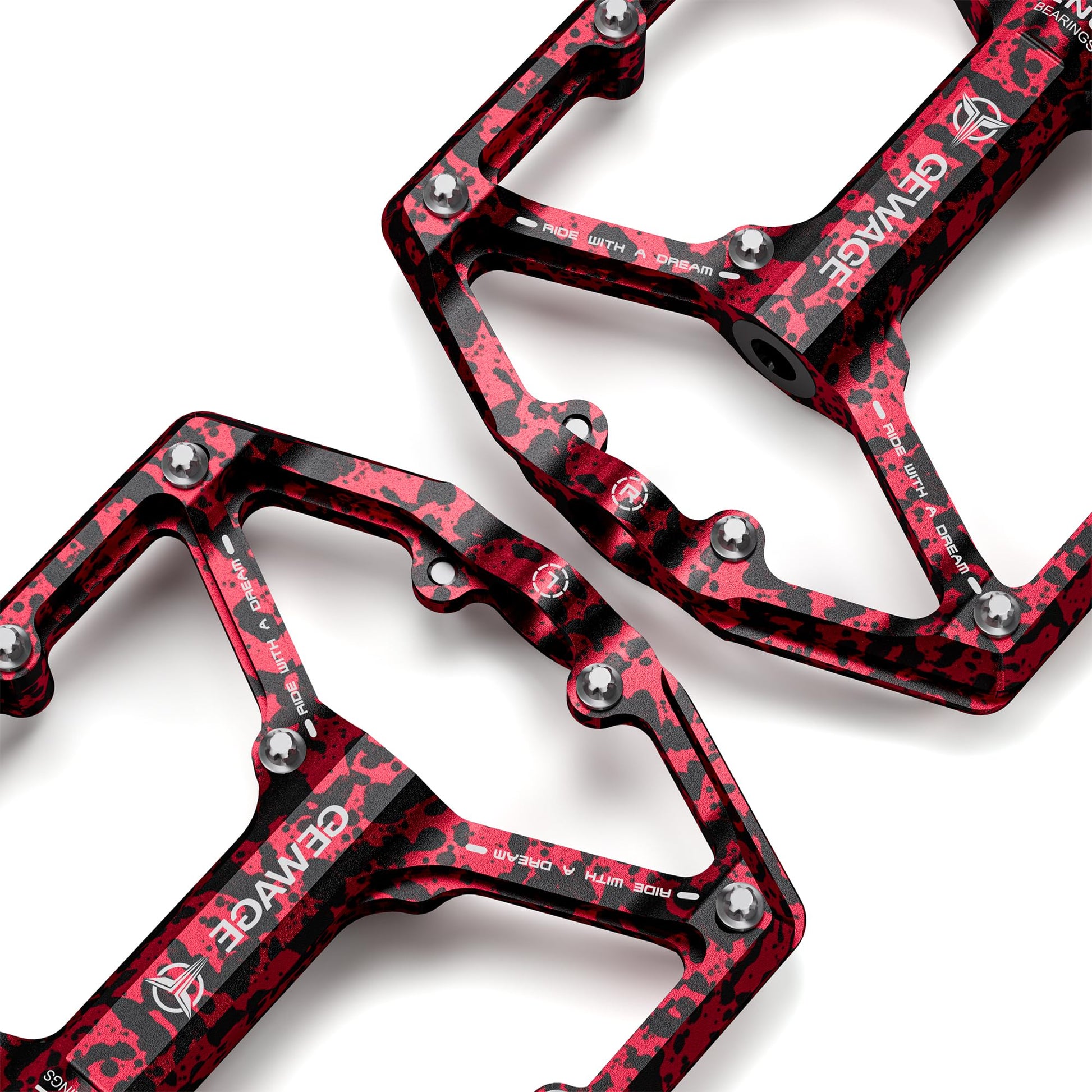 DARING Road/Mountain Bike Pedals - 3 Bearing Bike Pedals - CNC-machined 9/16-inch Flat Pedals with Removable Anti-slip Pins (Red Camouflage)