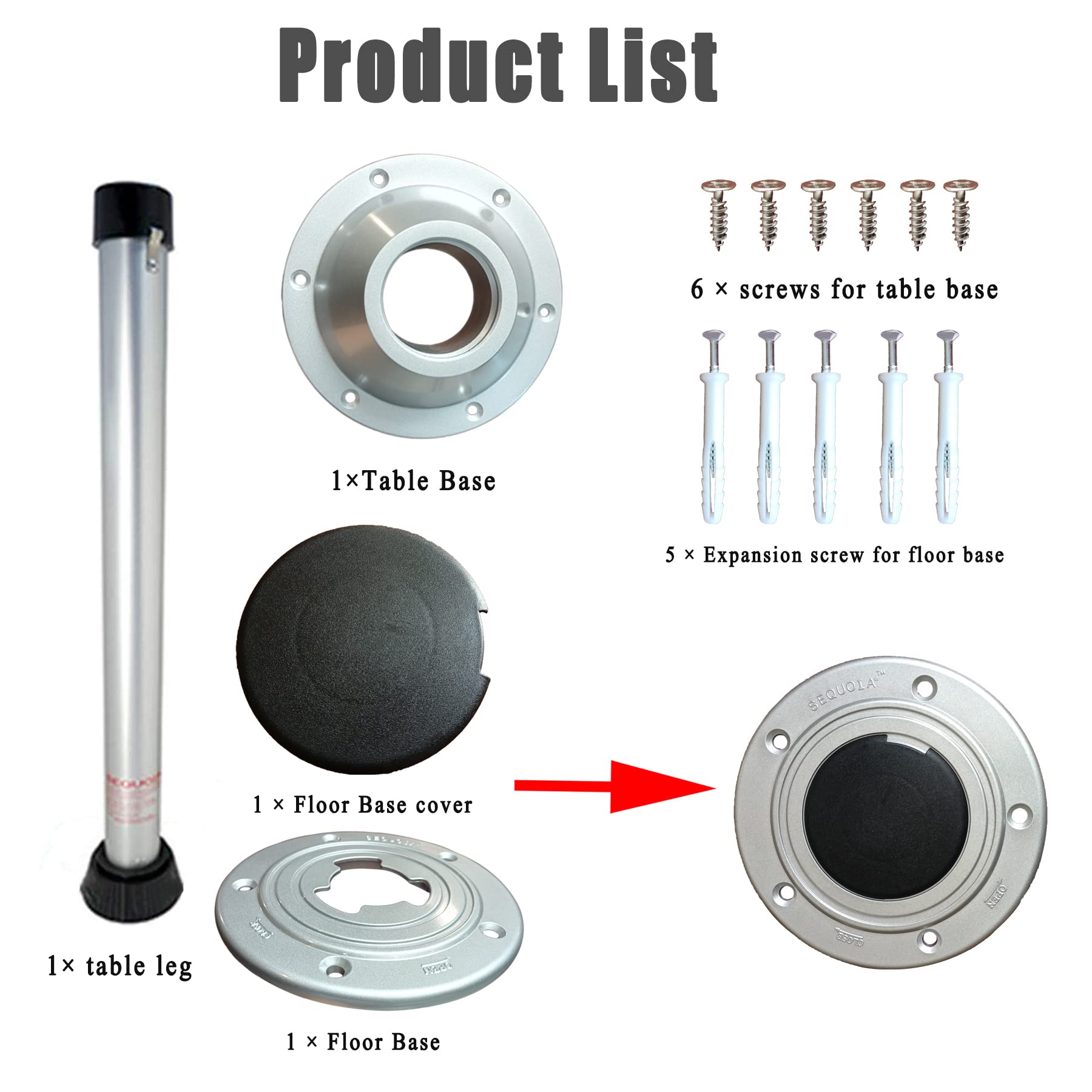 ["Design: Darkswan RV Table System features a Twist T-Bolt locking base/leg mechanism. The durable, stable leg system is perfect for your boat or RV. The leg can be easily removed for table storage or conversion to bed (in RV applications). The surface-mounted floor base is power coated on both sides to ensure corrosion resistance.",
