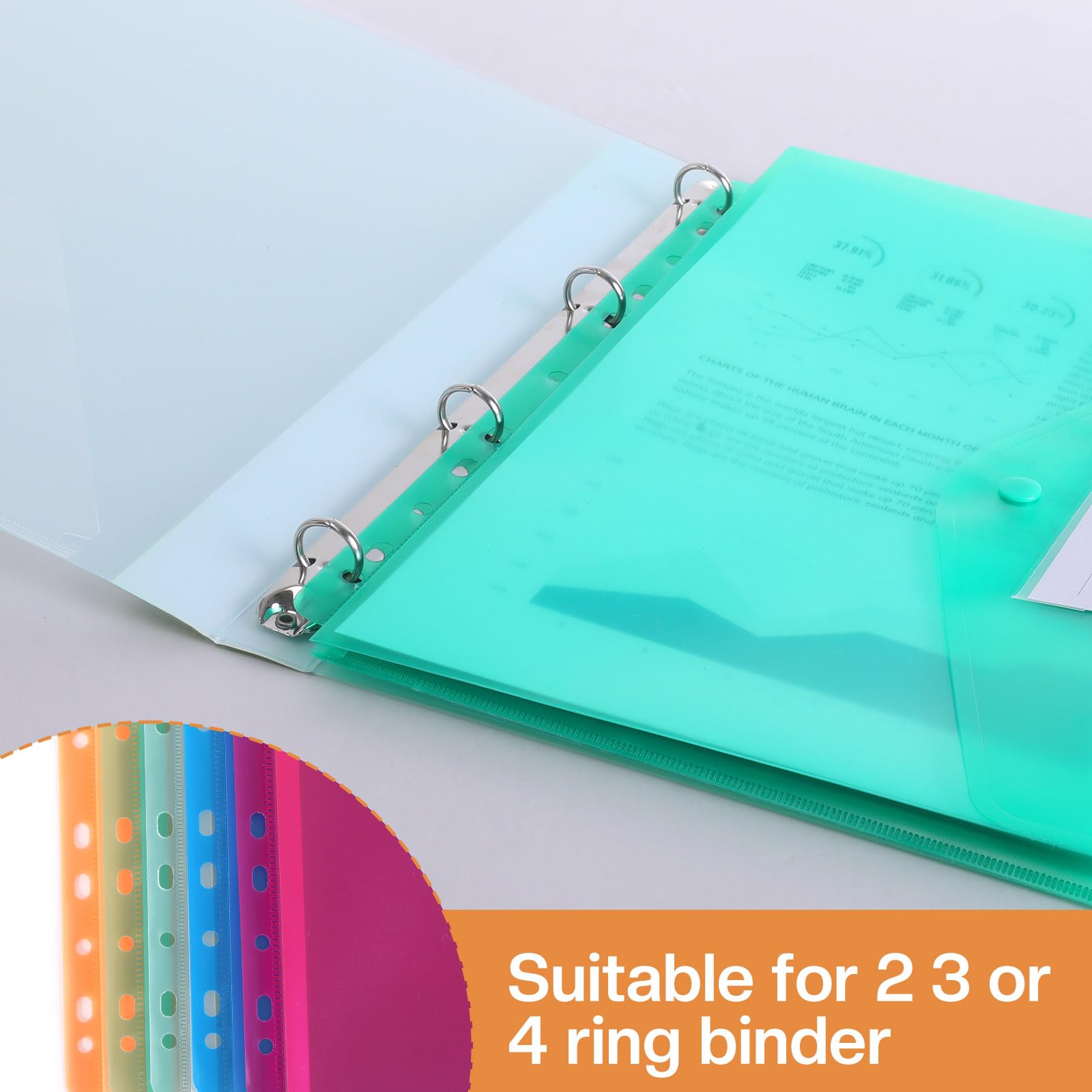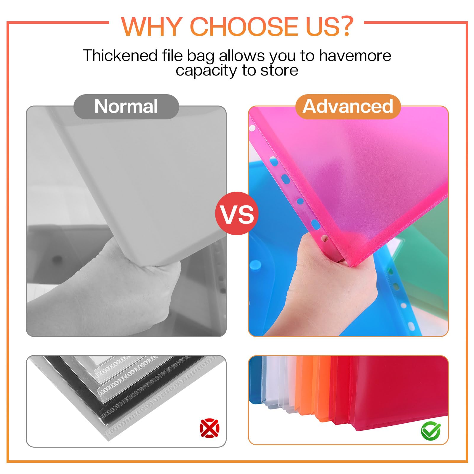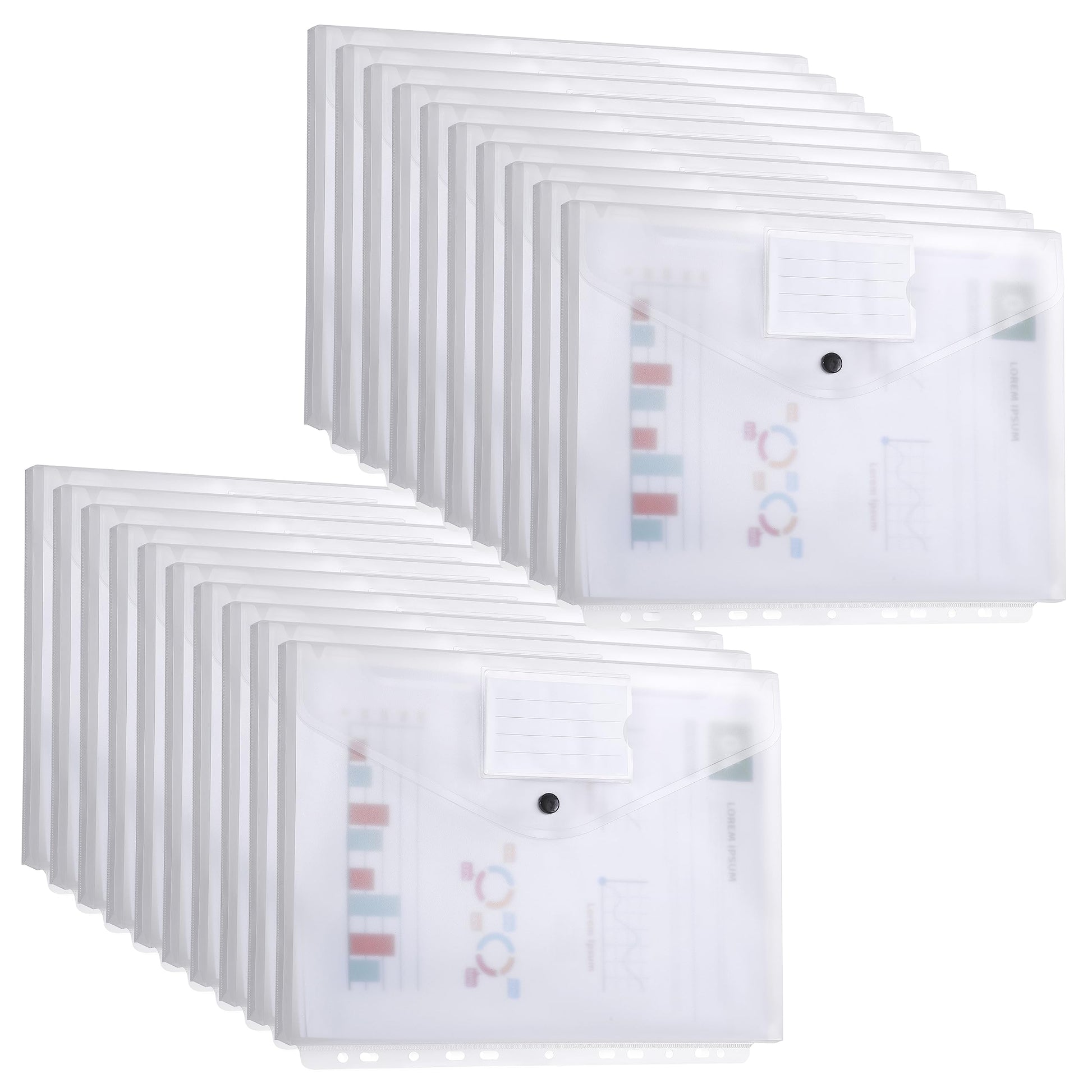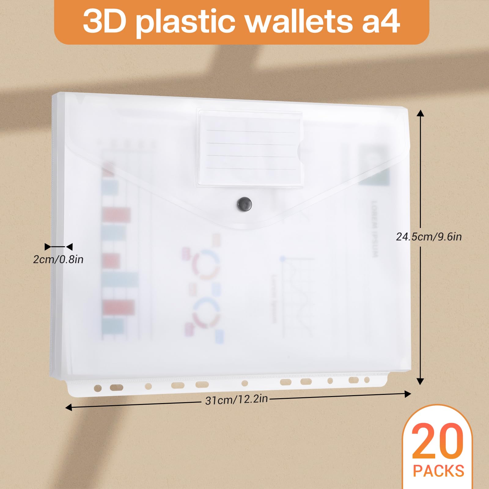 DATEFUN Document Pouch A4 20 Pack, Three-dimensional Document Folder A4, Transparent File Folder A4 with Binder Holes and Label Pocket, Holds 300 Papers (White)