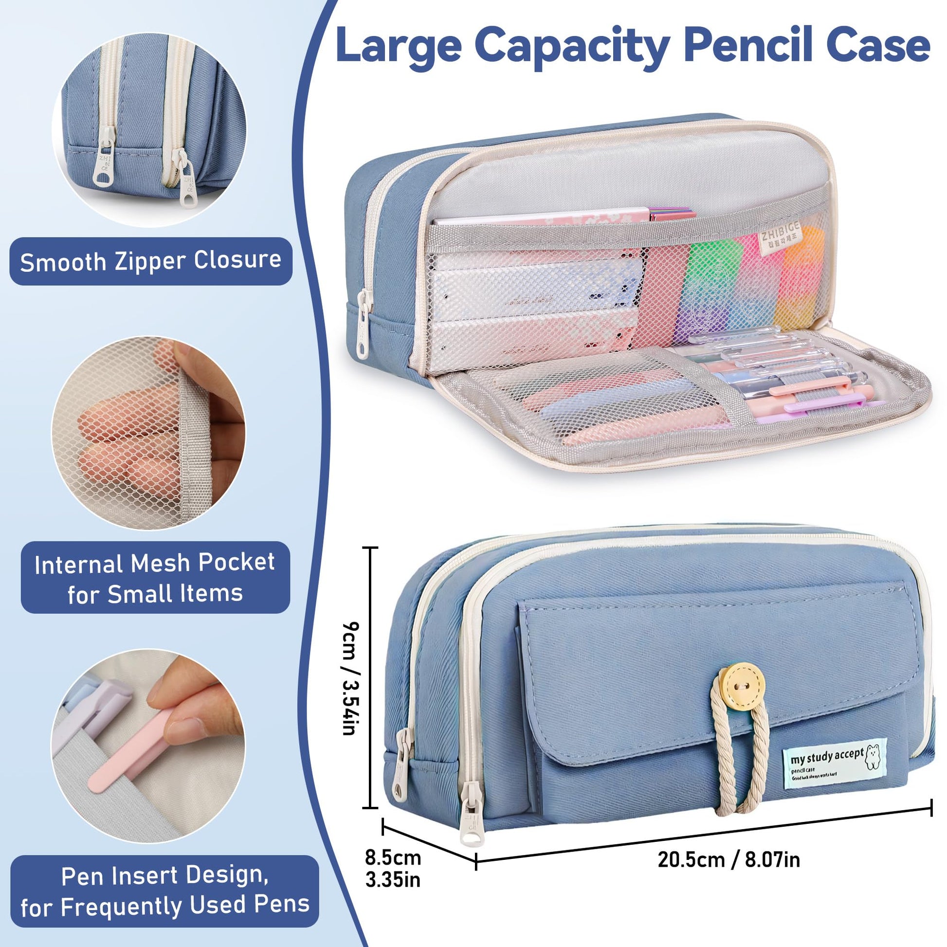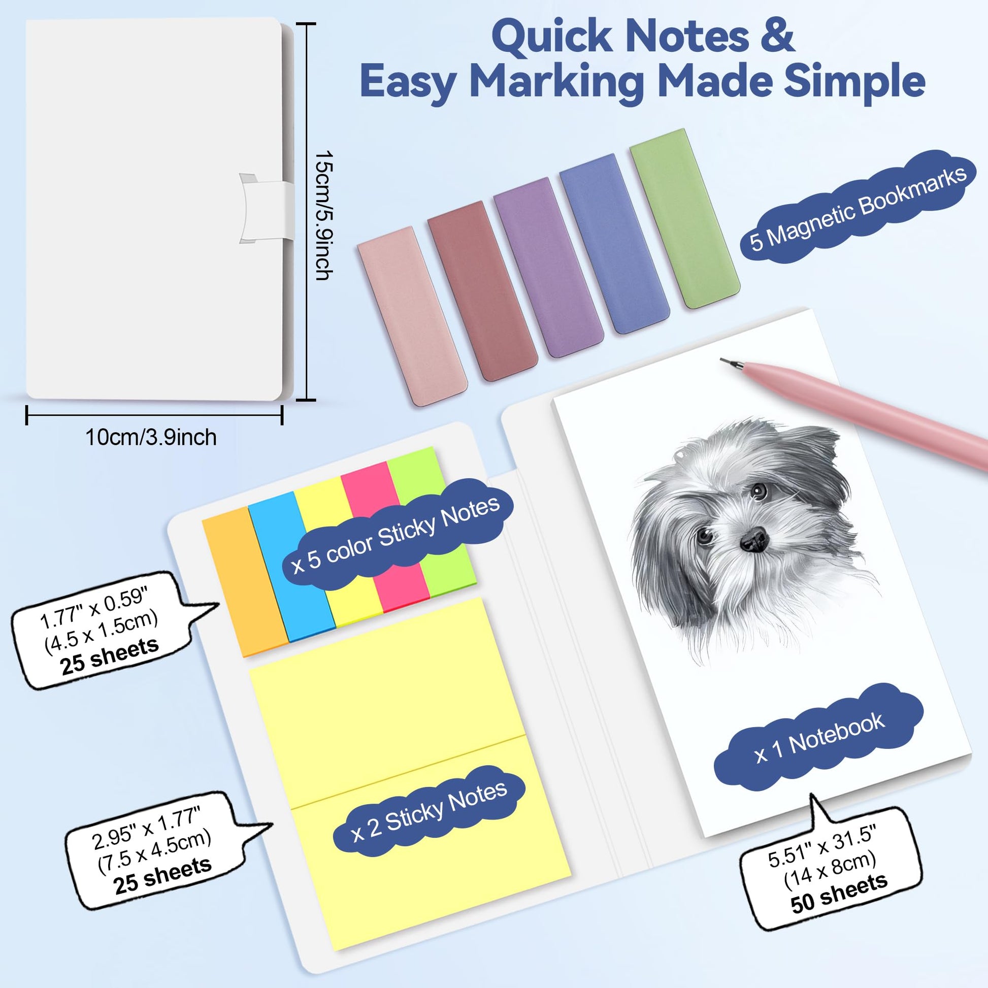 ["All-in-One Aesthetic School Stuff set: Includes a large pencil case, 12 pastel highlighters, 5 black gel pens with 5 refills, 6 mechanical pencils with refills, 4 erasable pens with refills (5 blue, 5 black), sticky notes, erasers, and 5 magnetic bookmarks. Great for school, office, and creative projects", "0.5mm Erasable & Gel Pens: Writing, erasing, and rewriting is easy with these erasable pens (ink disappears above 140°F, reappears below 14°F) and 5 gel pens (quick-drying ink) provide a clean writing experience. Includes refills. This cute stationery set includes refills for extended use", "Large, practical pencil case: With 4 compartments, mesh pockets, and pen loops, it offers plenty of space and organization. Made of soft fabric and smooth zipper, perfect for on-the-go", "Pastel highlighters & mechanical pencils: This stationery set includes 12 gentle highlighters that don't bleed through paper and make learning or journaling enjoyable. Also included are 6 mechanical pencils (3 x 0.5mm & 3 x 0.7mm), ideal for comfortable writing and drawing", "Perfect Gift: A thoughtful set for students, teachers, and creative minds, great for birthdays, Christmas, or other occasions. Promotes creativity and suitable for all age groups"]
