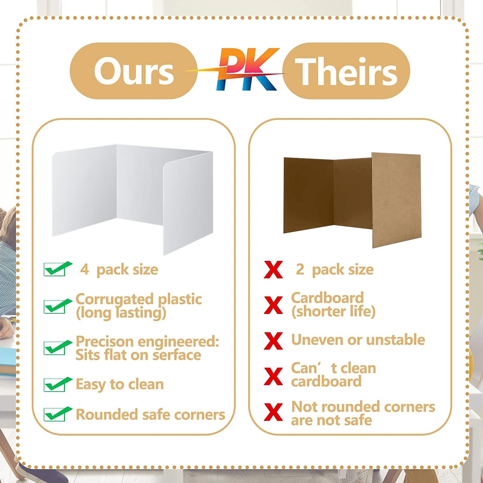 DAZZTIME 4 Piece Desk Divider, Foldable Desk Partition, Privacy Desk Panel, Foldable Multi-purpose Partition, U-shaped Joint, Durable for School, Office, Library
