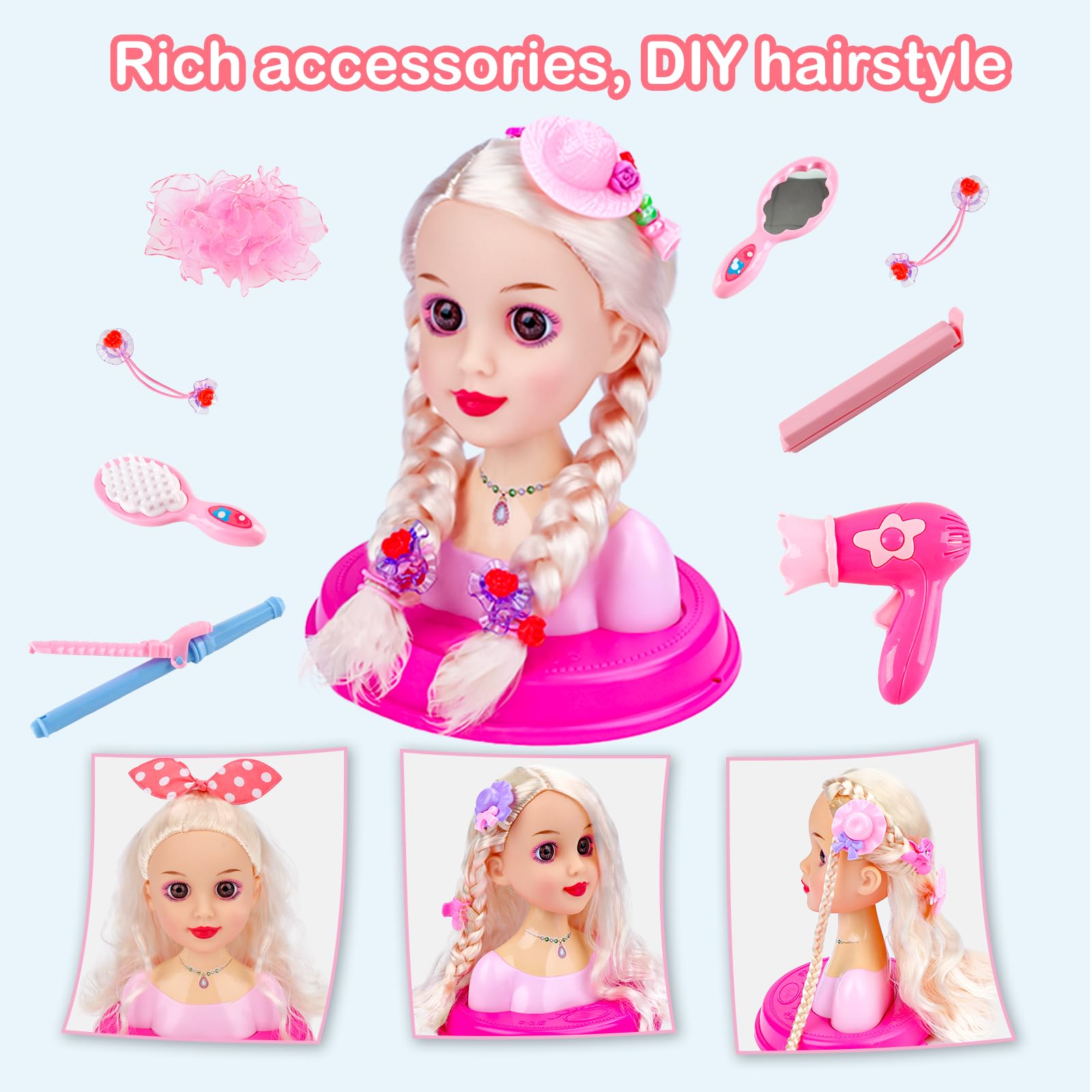 deAO Styling Head Doll for Kids, Styling Doll Head with Hair Dryer, Styling Head for Princess Dolls, Hair & Makeup Accessories, Toy for Girls 3+ years old