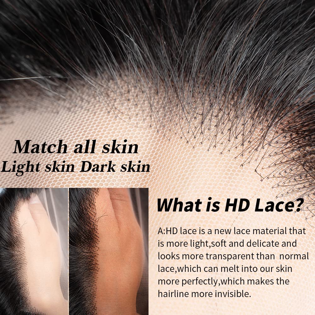 ["〖HD Lace Frontal Wig Human Hair〗 13X4 transparent Lace Front Wig, easy to melt into your skin, 10A Grade Brazilian Remy Hair, cut directly from young girls' heads instead of collecting from the ground. Soft and natural, comfortable on the skin.","〖Glueless Lace Front Wigs〗Pre-shaped, custom fit 3D wig cap, molds to the head, no gel or adhesive needed, easy to install, more comfortable to wear and protects your edges.","〖Pre-Plucked with Baby Hair〗Pre-plucked lace wig with natural hairline, no need to spend time plucking it, saved baby hair could make natural and beautiful edges, beginner-friendly.","〖Average Cap〗Adjustable cap with 3 secure combs, secure on head, 53-58 cm, suitable for most people, lace in the back could help to create more styles.","〖Friendly Reminder〗All wigs will take a long time to ship, you may need to straighten the hair before wearing it, if you want to dye the hair, we highly recommend asking your professional stylist to do it for you."]