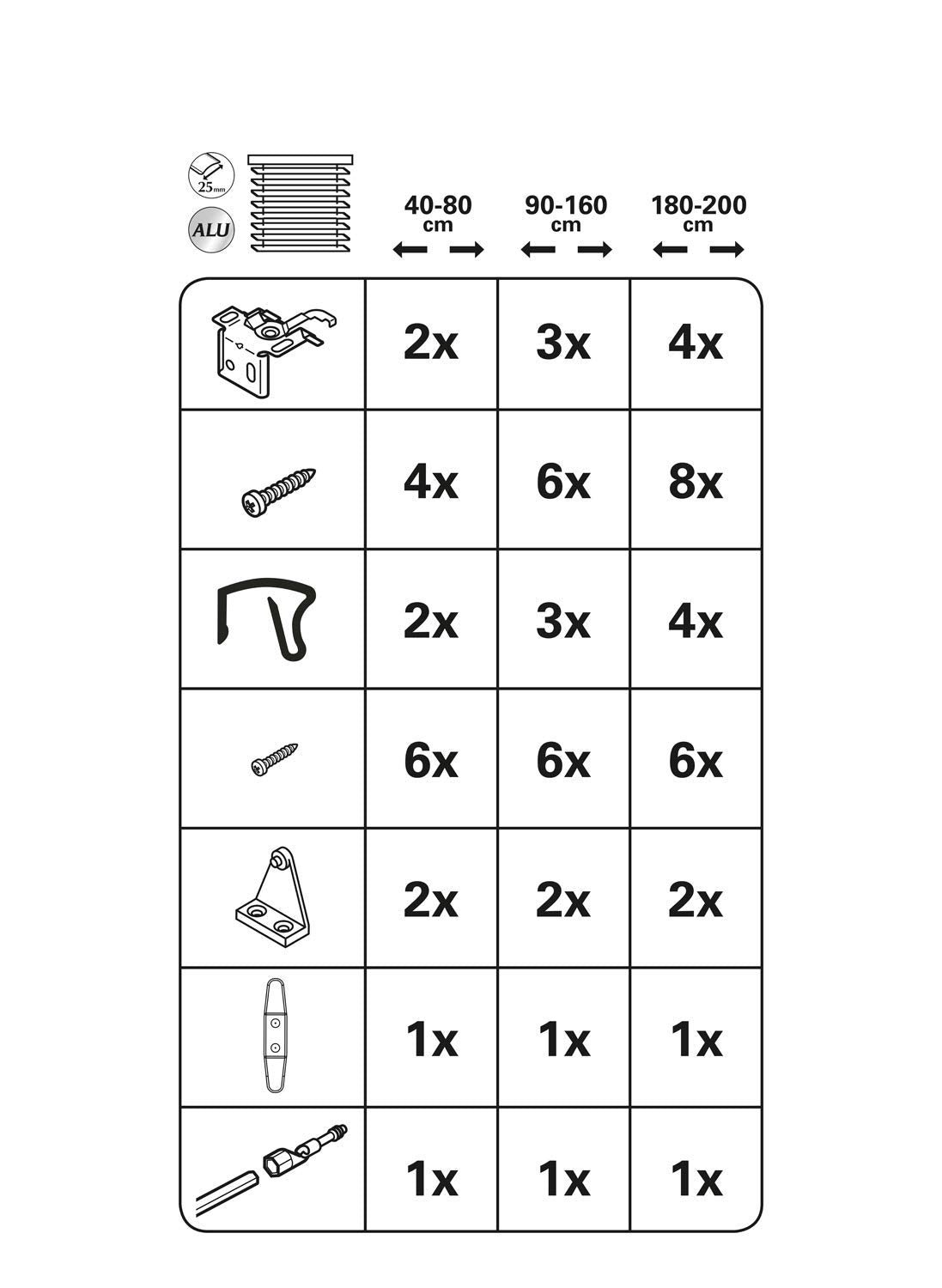 Fixation with clamp brackets: Easy assembly of the individual parts, Attaching the blinds to the upper window frame by attaching two clamp brackets (3 clamp brackets from 90 cm), Suitable for window frames with a thickness of 10 to 17 mm, Screw mounting possible (material included)