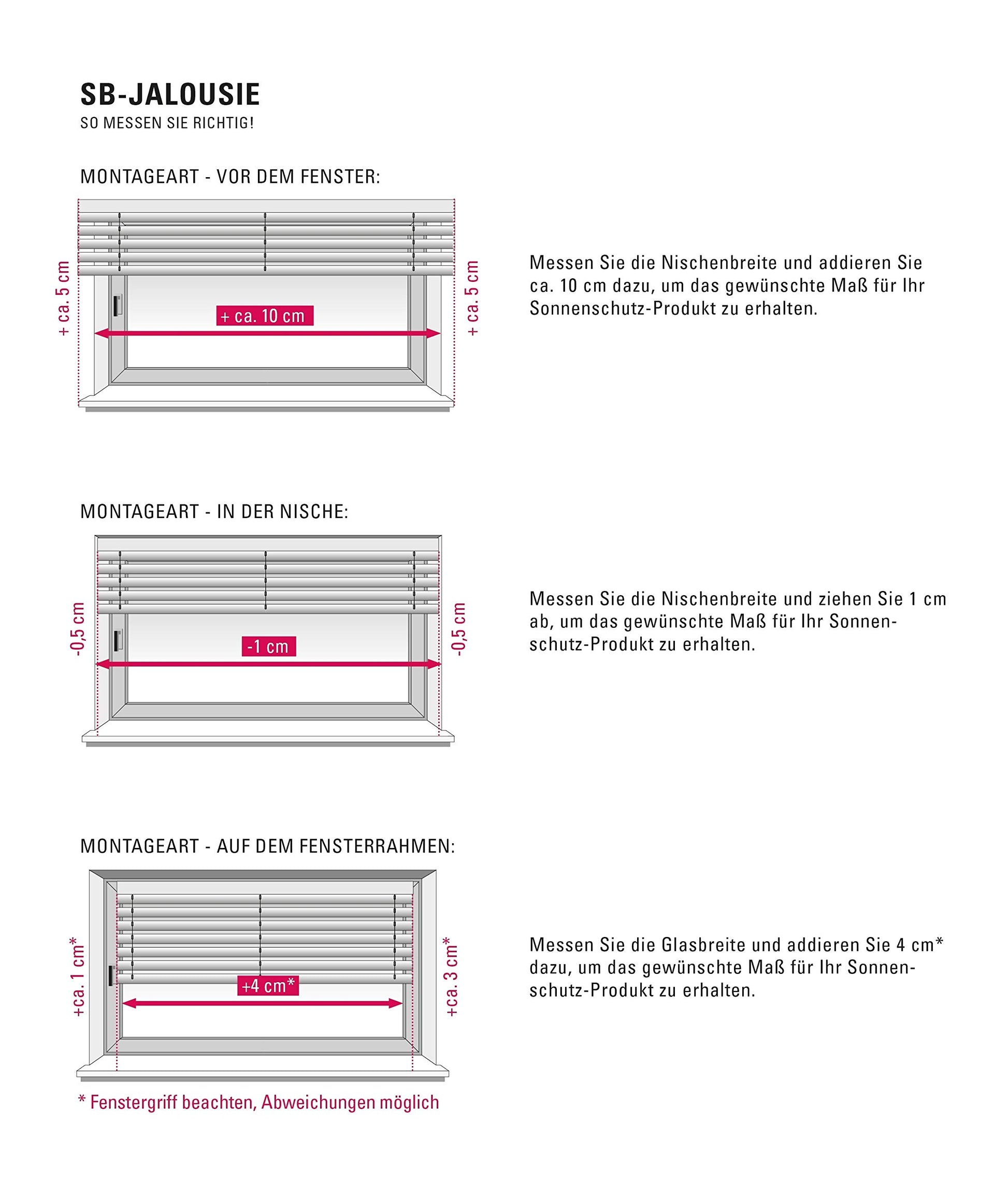 Decorative window decoration: Length-adjustable aluminum blinds with 25 mm wide slats, No complete blackout, Tip: Curvature inwards to protect against sunlight and heat, Slats can be wiped clean with a damp cloth