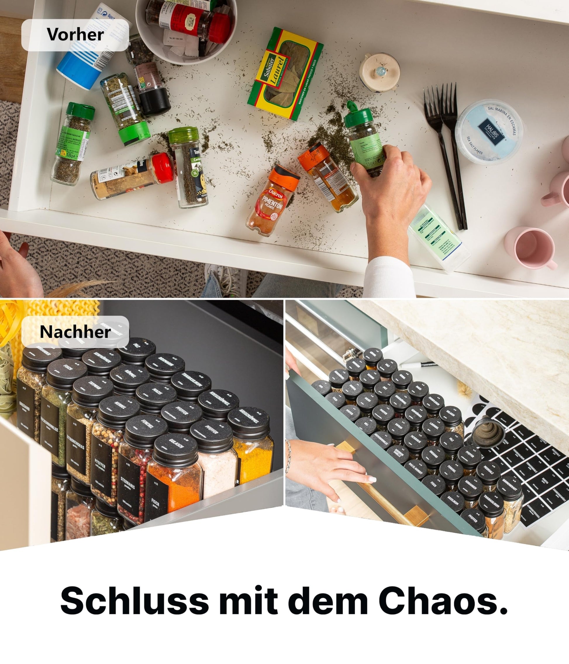 "FOR MORE ORDER - From now on, present your spices in our 36 jars uniformly and stylishly. The spice jar set is the perfect kitchen organizer for your spices.