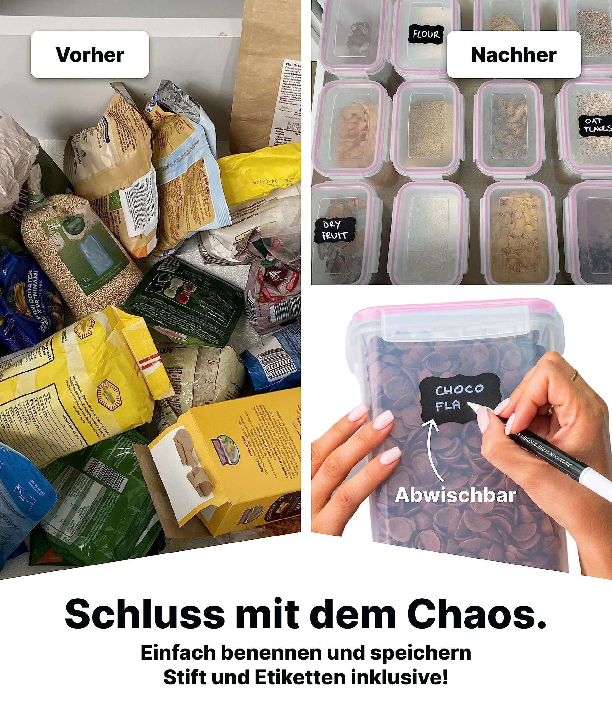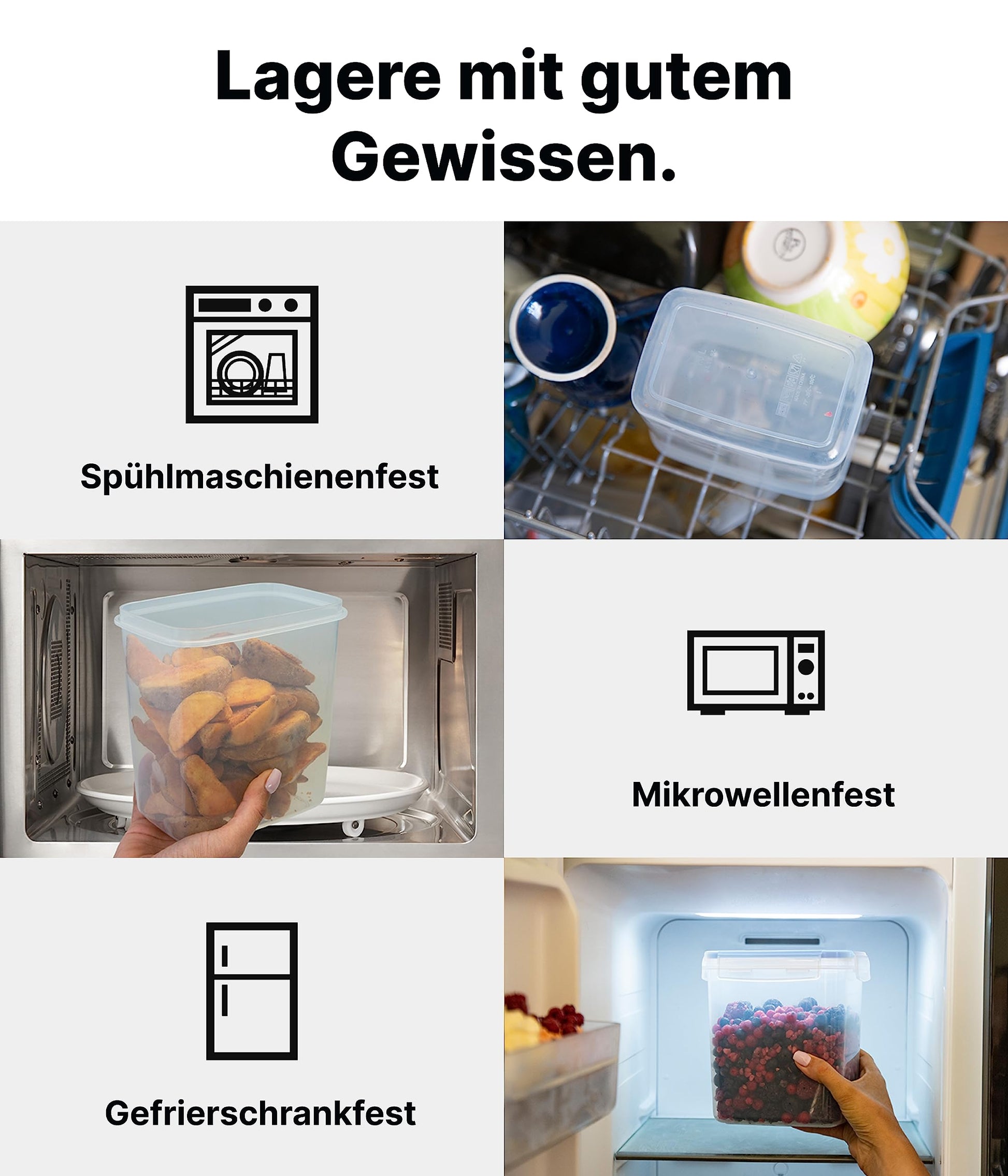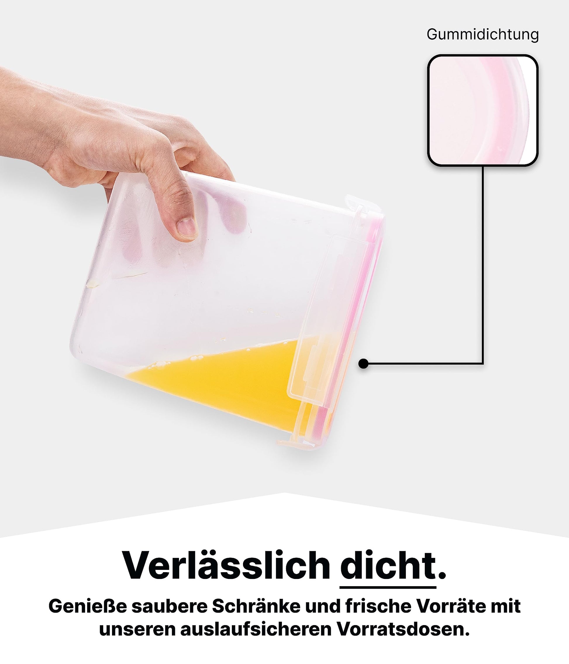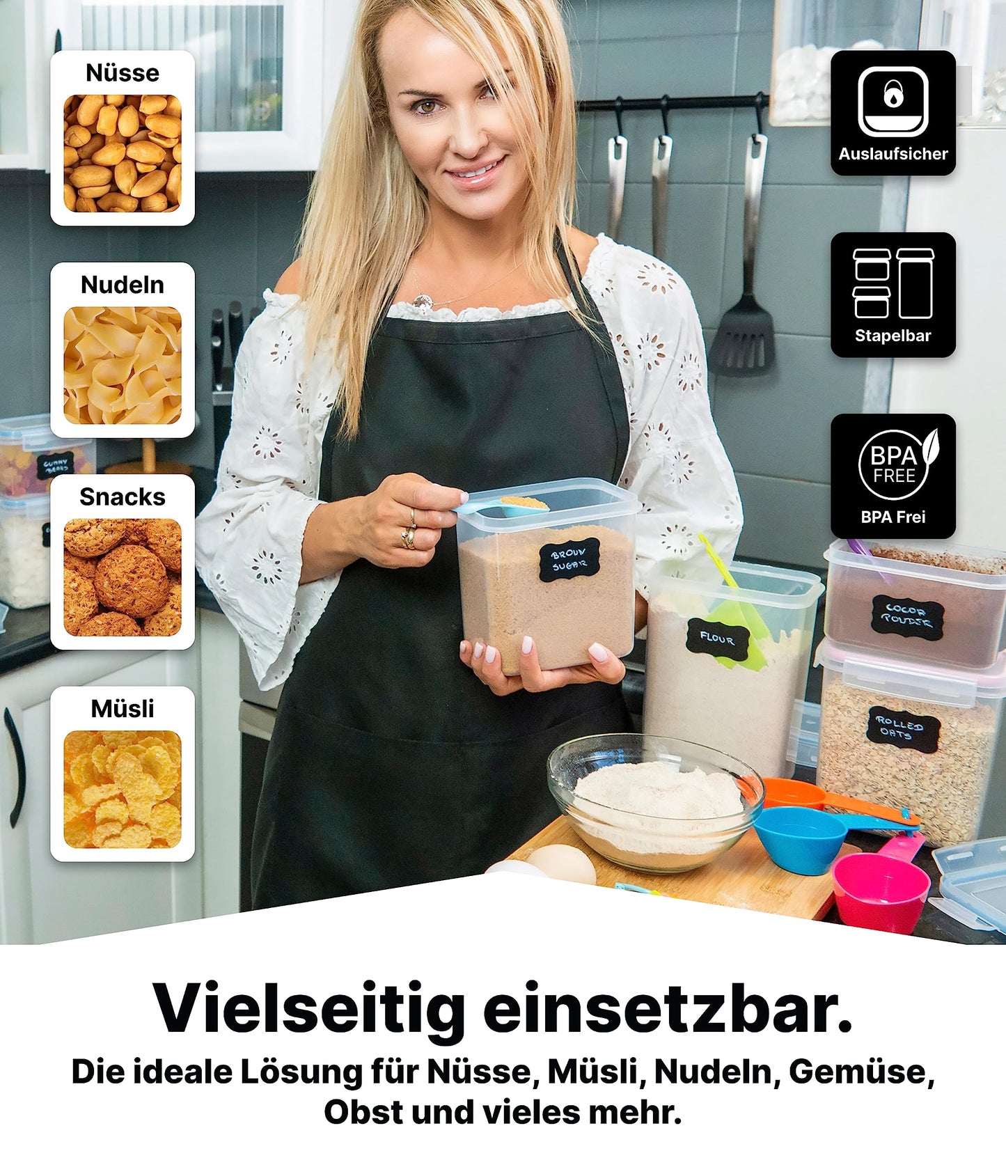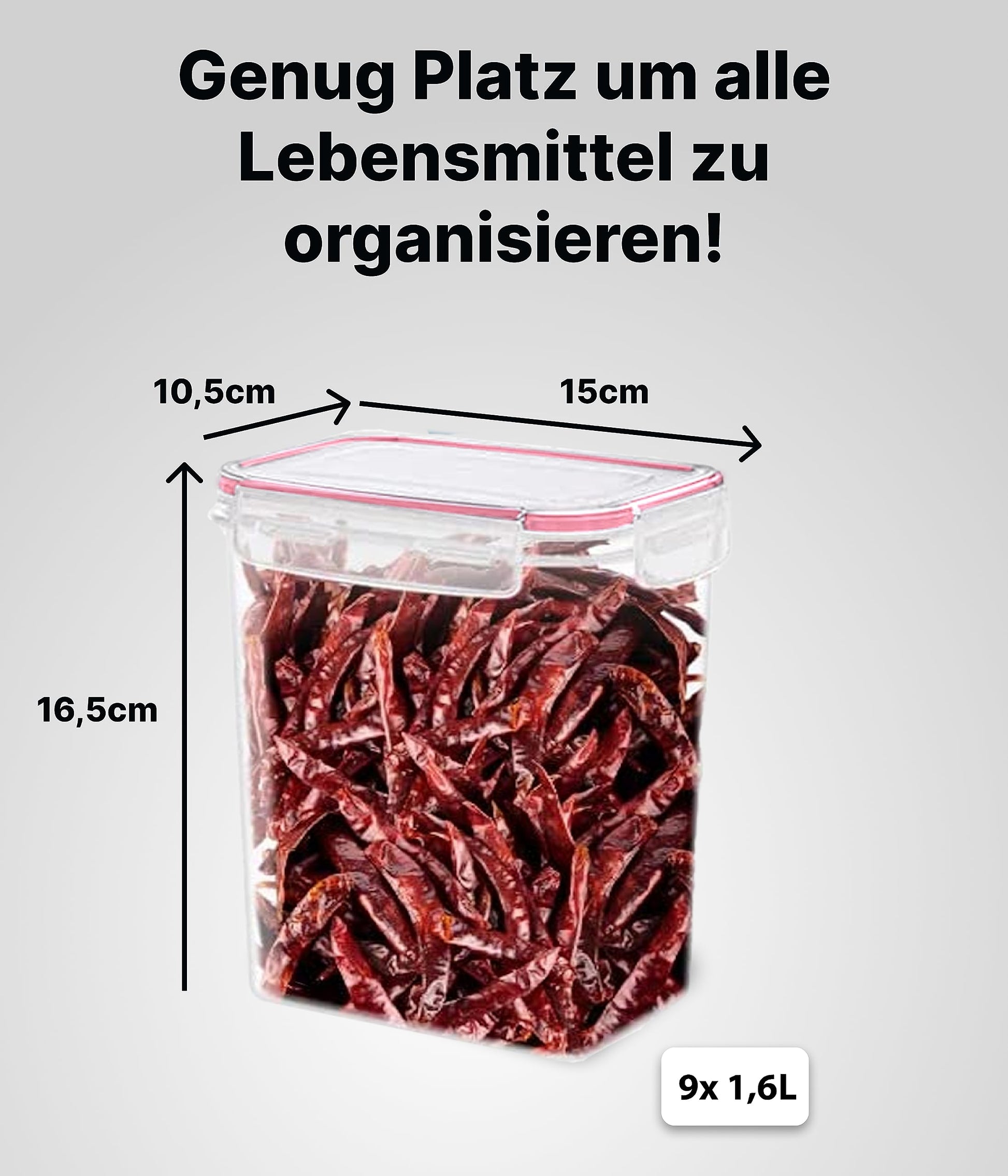 Deco house® storage containers 9 piece set 1.6L - kitchen storage box airtight storage container - plastic storage containers with lid - storage jars for storing pasta, cereal, flour