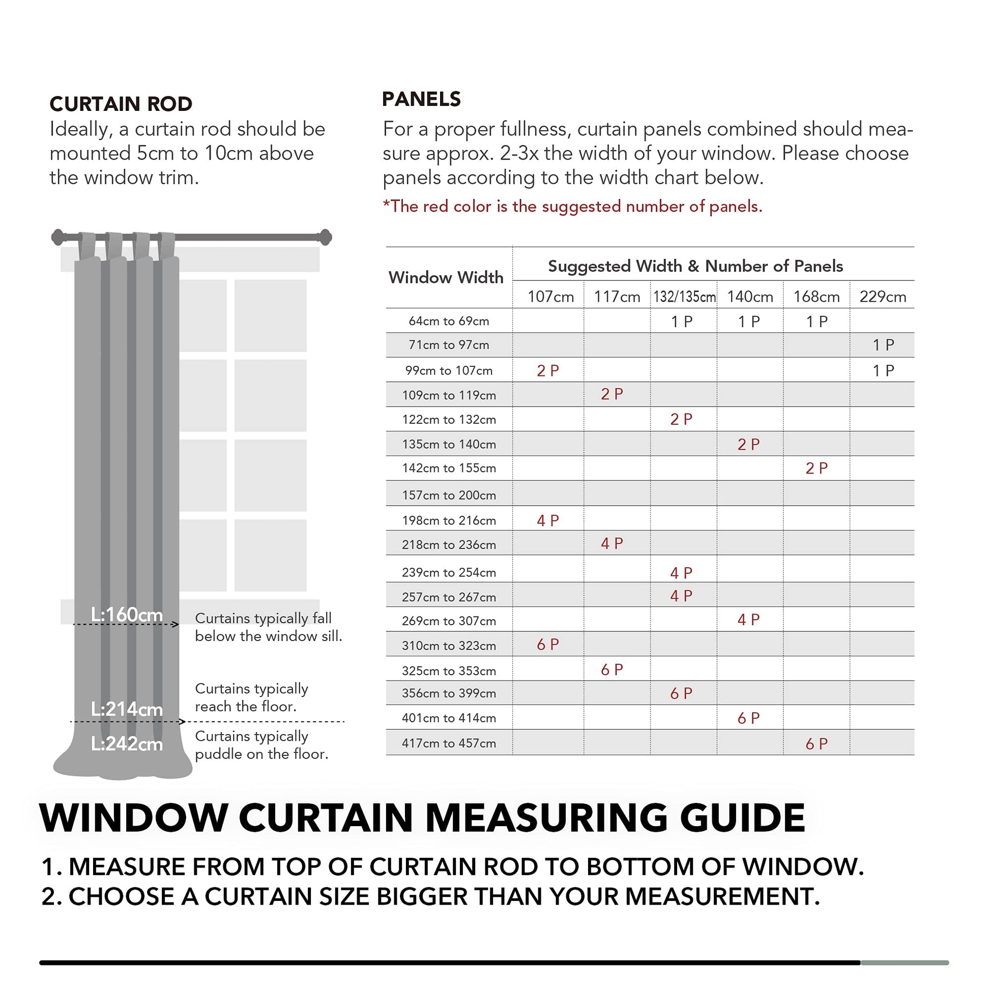 ["SIZE AND INSTALLATION - Size: approximately 96.5x55.1 inches in height x width for 1 piece. The height is measured from the top of the fabric. Quantity: 2 pieces in one package. These amazing curtains are available in various sizes and sold in 2 pieces per pack. The installation and care is very simple. The curtain has 7 loops. It is suitable for most curtain rods on the market.","FANTASTIC MATERIAL & STYLISH DESIGN - Deconovo blackout curtains are made of 100 percent Polyester. They are soft, draped, elegant, and feel very smooth. They look great on your windows and decorate your home. The curtain has a simple design and a comfortable touch feeling. The curtains with rich colors can match your space.","SHADING PERFORMANCE - These blackout curtains prevent heat from escaping and prevent sunlight from entering the rooms. The opaque curtains with a black intermediate layer have a better blackout effect. These blackout curtains can ensure your undisturbed sleep. They are good for bedrooms, children's rooms, living rooms, and guest rooms.","NOISE REDUCTION - These thermal insulated curtains also act as noise reduction barriers, reducing the noise from busy streets and areas. These blackout curtains can make a room warmer in winter and cooler in summer.","CARE INSTRUCTIONS - Machine washable up to 86°F. Do not bleach. Iron up to 230°F. Our many years of experience in the textile industry guarantee the best for your needs. If you have any problems with your orders or products, please try our excellent customer service. If you have any questions, we are always happy to help."]