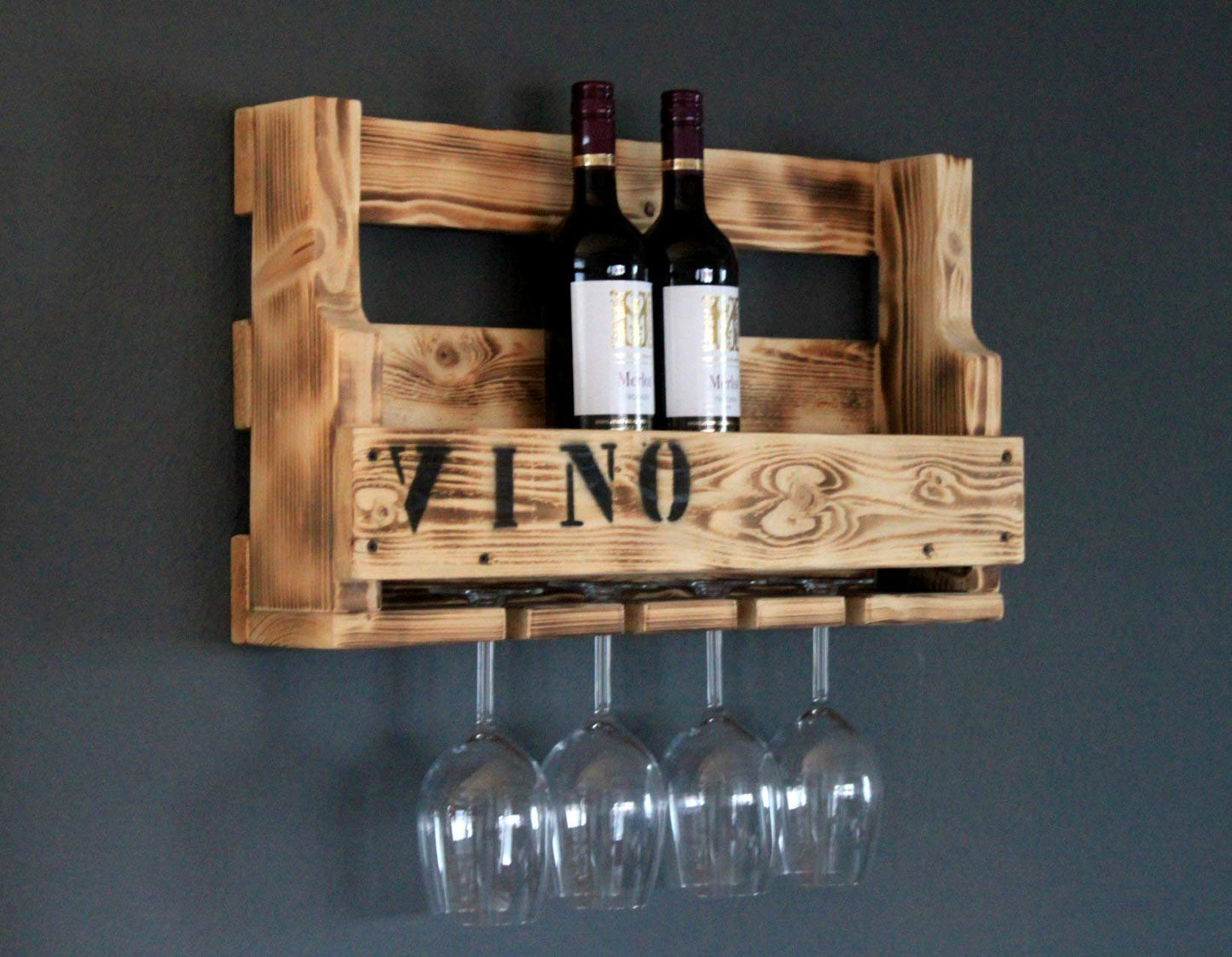 ["π· MASSIVE - high-quality wine rack for the wall made of solid wood (Nordic pine) Flamed","π· INCLUDES INSERT - for 4 beautiful wine glasses, in a high-quality rustic look","π· READY ASSEMBLED - this wooden wine rack is ready to use as a wall bar","π· 100% HANDMADE - from a small carpentry in Northern Germany, each piece is unique!","π· MEASUREMENTS - approx. 24 inches wide / 13.4 inches high / 5.5 inches deep /// Depth: inside approx. 3.6 inches, Weight: approx. 10.4 lbs The bottom insert is suitable for hanging 5 glasses"]