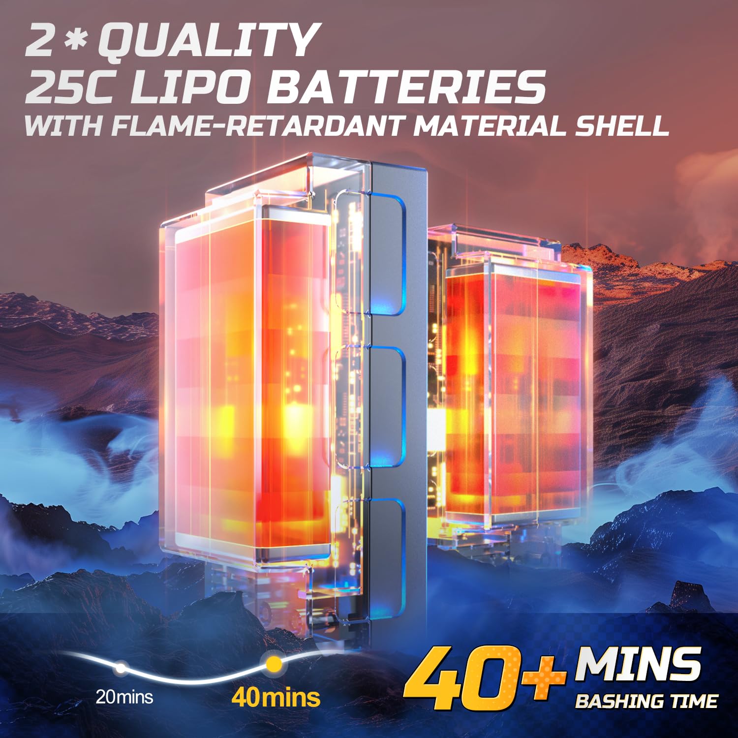 【Upgradeable and Perfectly Compatible】 Independent smart 2S/3S 45A ESC supports the 3S-capable drive system, achieving speeds over 42 mph (68 km/h) under optimal conditions with a 3S LiPo battery. With an independent receiver, you can enhance its performance or personalize its appearance by adding accessories and parts, allowing you to customize it to your preferences.