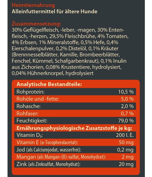 "Specially tailored dog food for older dogs. With an adapted recipe inspired by the natural diet of wild wolves"