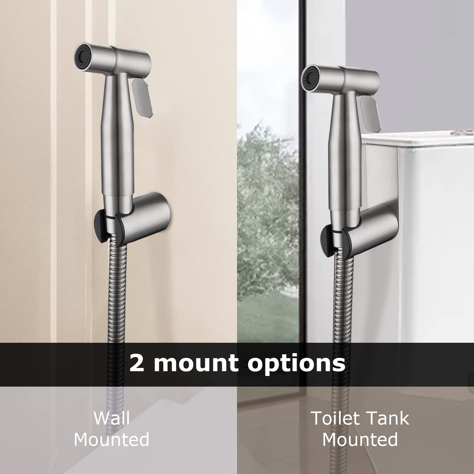 ["【High-quality Material】The main body is made of 304 stainless steel, which is lead-free, environmentally friendly, and durable. Full solid brass construction, simple and stylish appearance with a sense of high quality, and the coating is not easy to fall off. Superior brushed surface for rust resistance, corrosion protection is easier to maintain and operate.","【Booster Spray Gun】Strong water discharge under pressure, smooth water discharge, and strong cleaning power. It is cleaner and more convenient than wiping with toilet paper.","【Smooth Operation without Leakage】Adopts high hardness precision ceramic valve to ensure smooth and durable handle operation. Smooth and labor-saving operation ensures that the faucet drips without leaking. At the same time, high temperature resistance, stable performance.","【Accessories】Universal Standard 1/2\" connector, 1.5m stainless steel hose. Retractable elastic tube with double-row buckle elasticity, built-in anti-tangle inner tube.","【Application】This clean gynecological shower set is perfect for personal hygiene, pet showers, Muslim showers, or baby cloth washing, especially suitable for expectant mothers. Whether you need to prevent hemorrhoids or use an intimate cleansing solution, this high-quality shower set will meet your needs."]