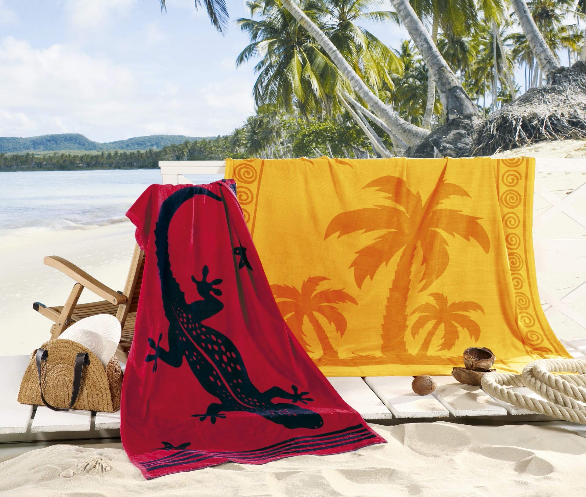Delindo Lifestyle Terry Beach Towel Tropical Gecko red, 100% cotton, beach towel measures 100x180 cm.