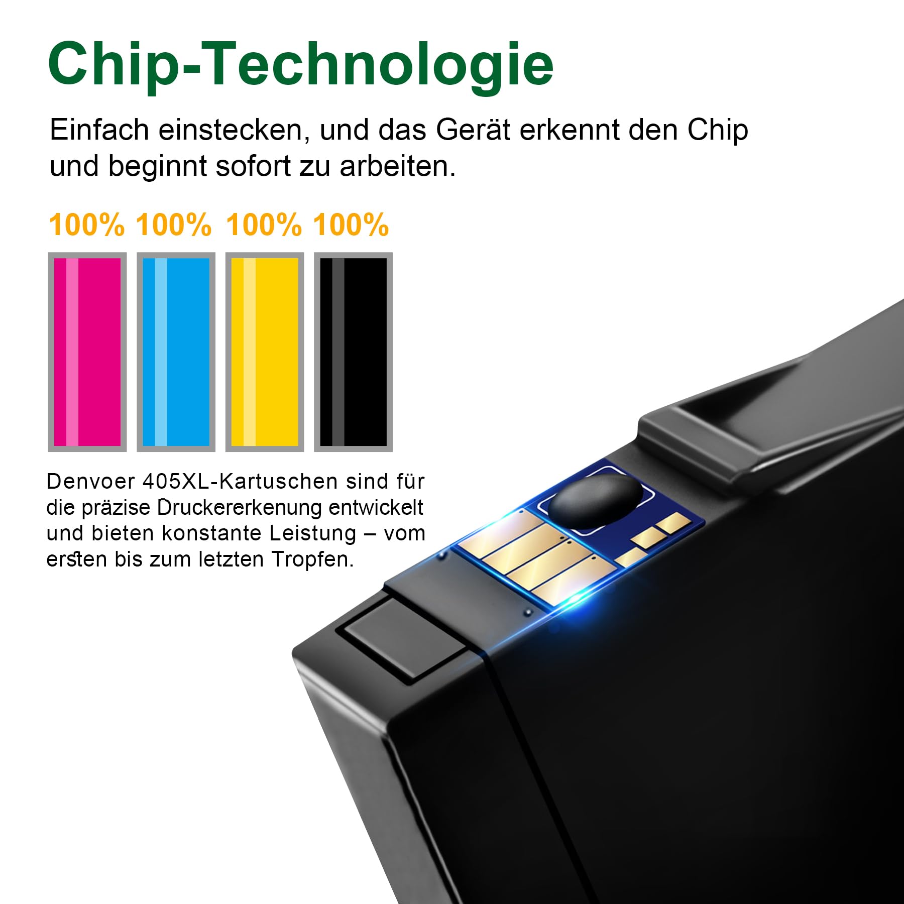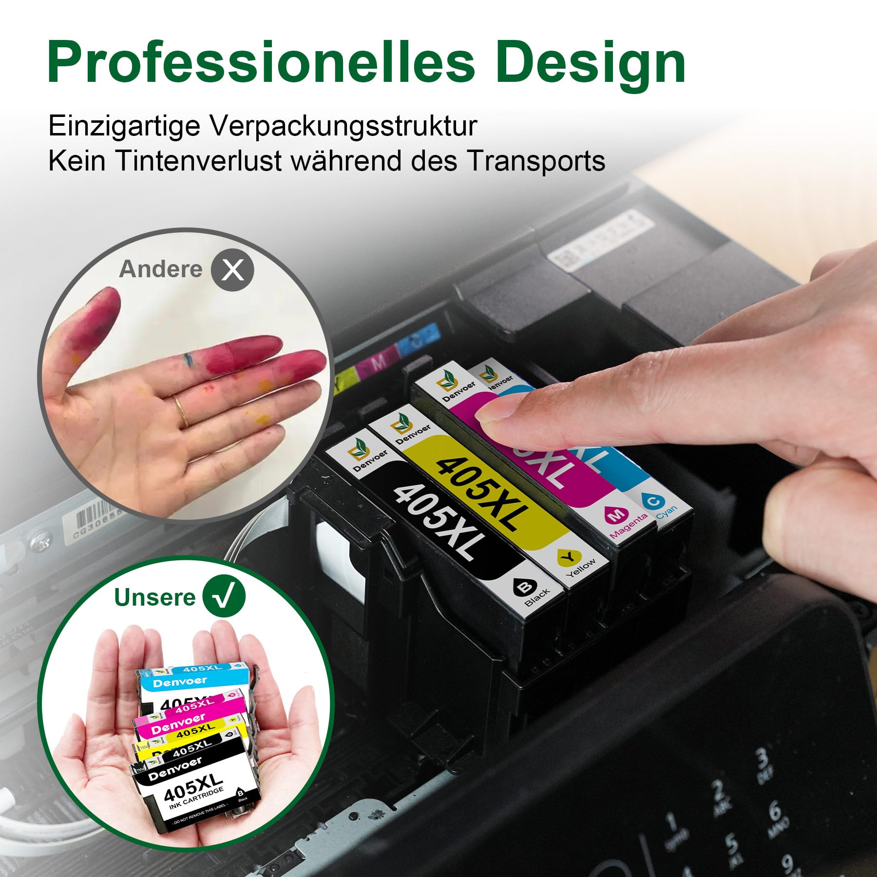 Perfectly matched to the printer: Denvoer 405xl ink cartridges replacement for Epson 405xl for Epson Workforce WF-4820DWF WF-3820DWF WF-7830DTWF WF-7840DTWF WF-7310DTW WF-4830DTWF WF-3825DWF WF-4825DWF WF-7835DTWF. The Denvoer 405xl ink is equipped with the latest smart chip and detection technology, ensuring 100% compatibility with your printer and fast detection for smooth and efficient printing.