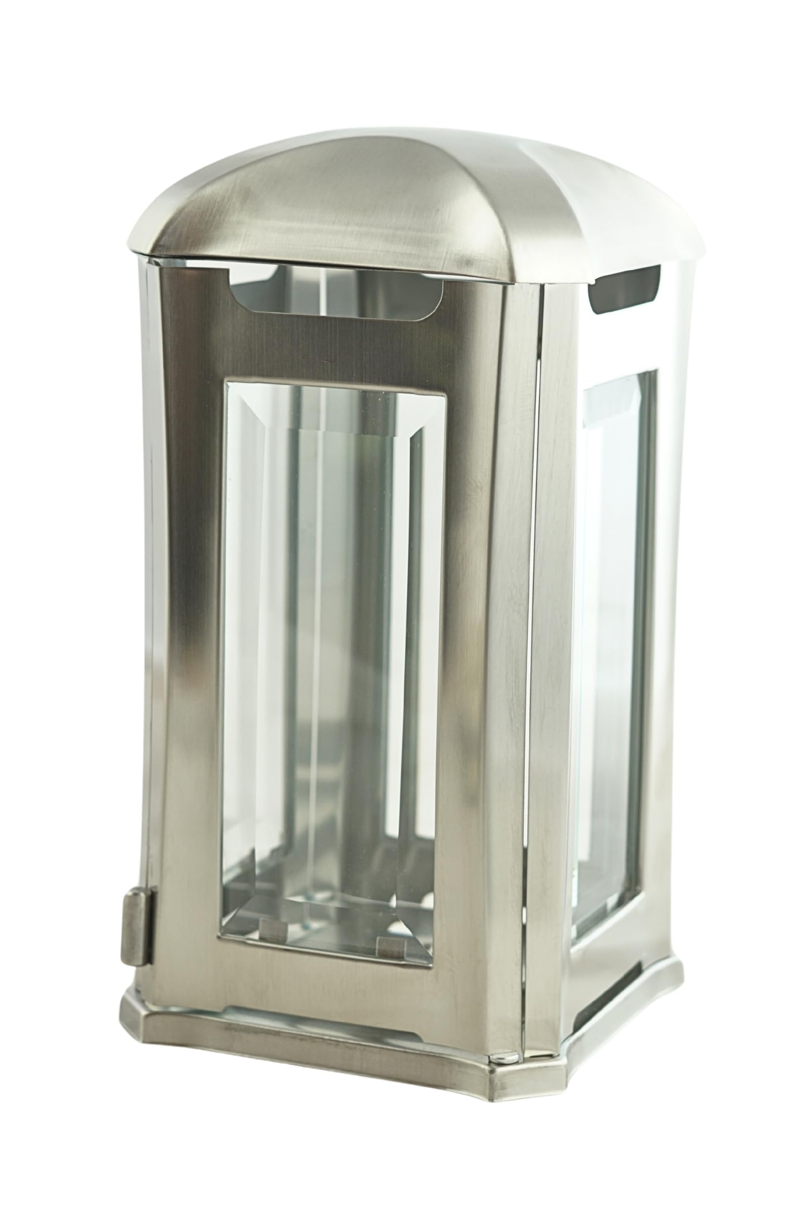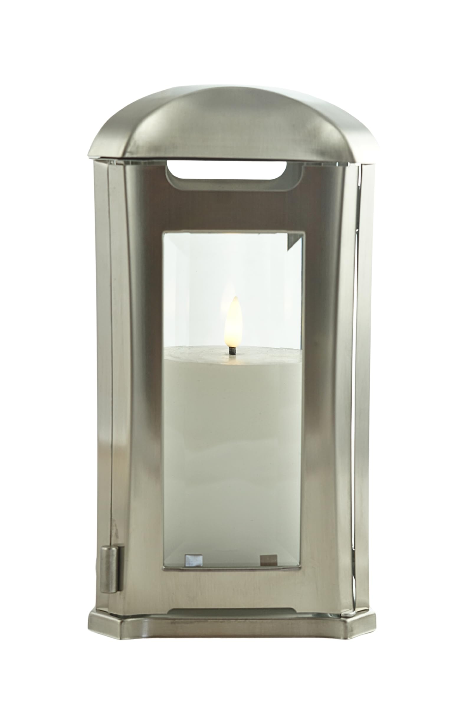 Practical side door with magnetic closure for easy candle replacement; window interchangeable.