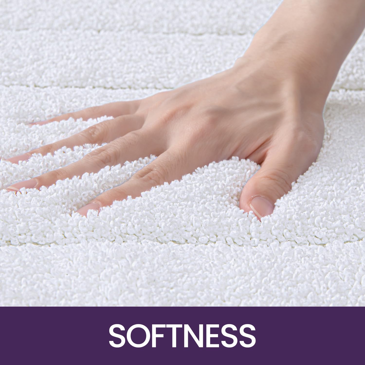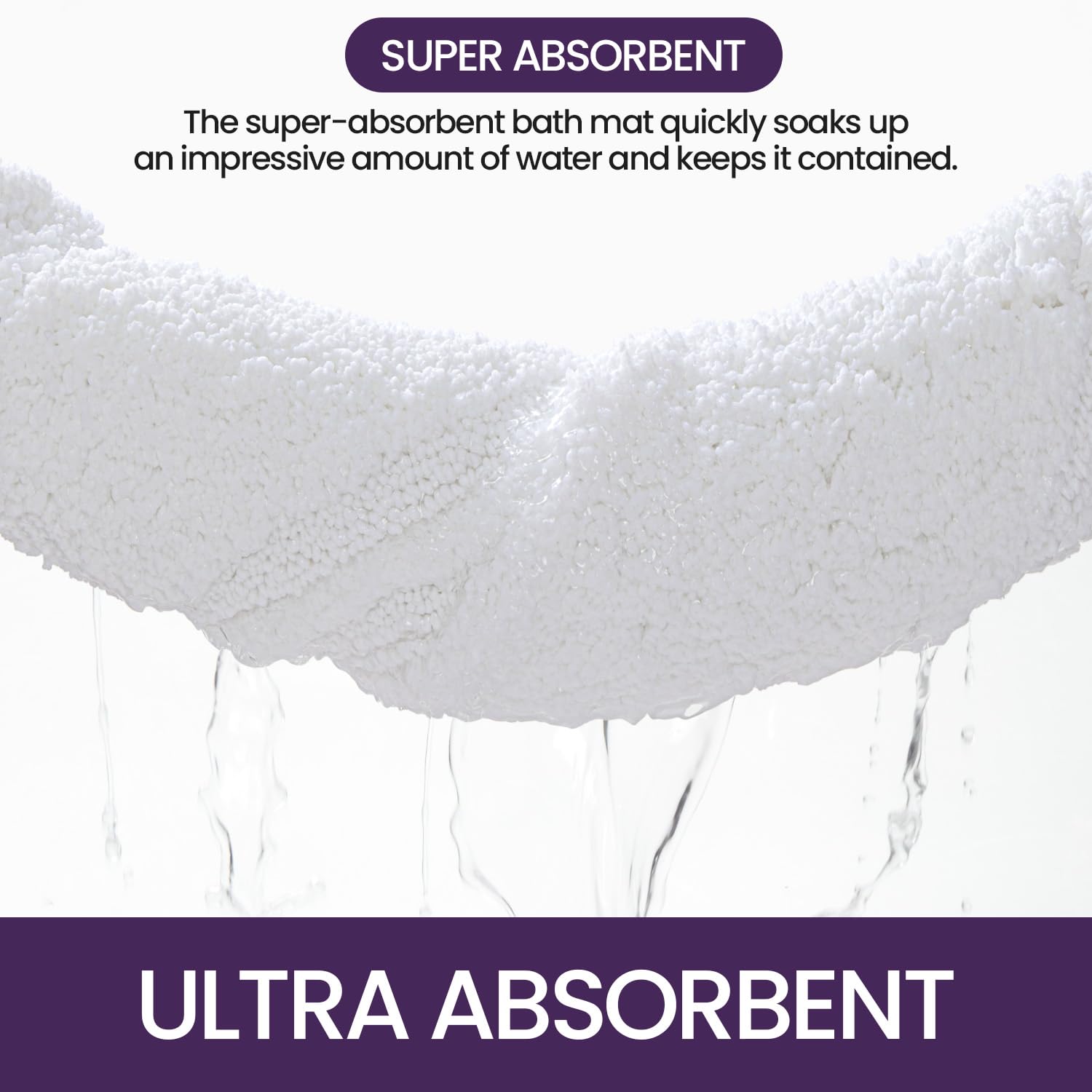DEXI Bath Mat, Non-Slip Soft Bathroom Rug, Absorbent Bathmat, Machine Washable Bath Rug for Shower, Bathtub, and Toilet, White, 60 x 110 cm.