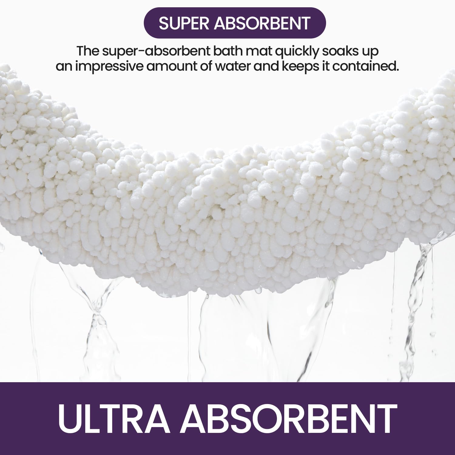 Super Absorbent: The super soft and thick, fluffy surface protects your floors from dripping water when you step out of the bathtub or shower. The quick-drying fibers allow the mat to dry quickly and cleanly, preventing mold.