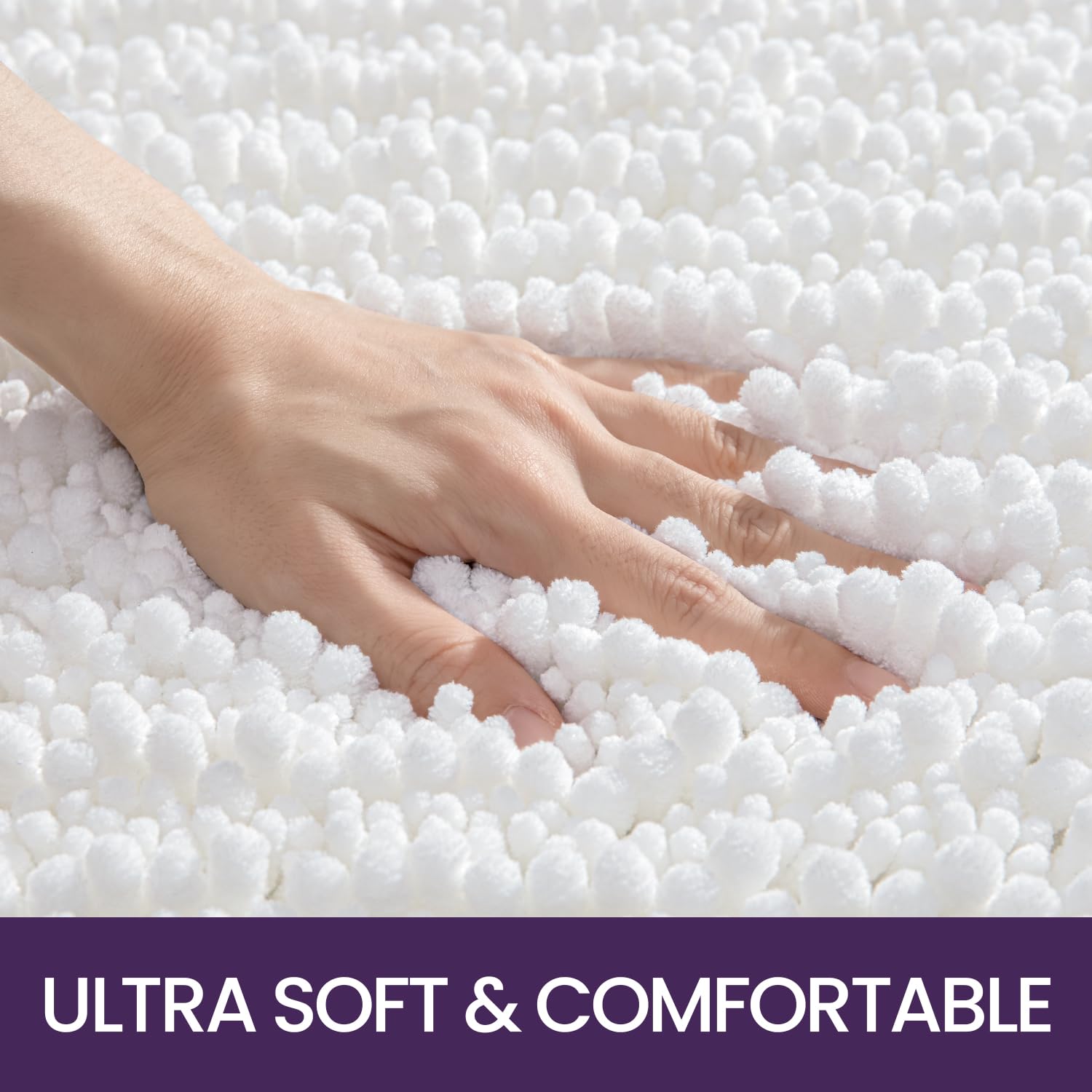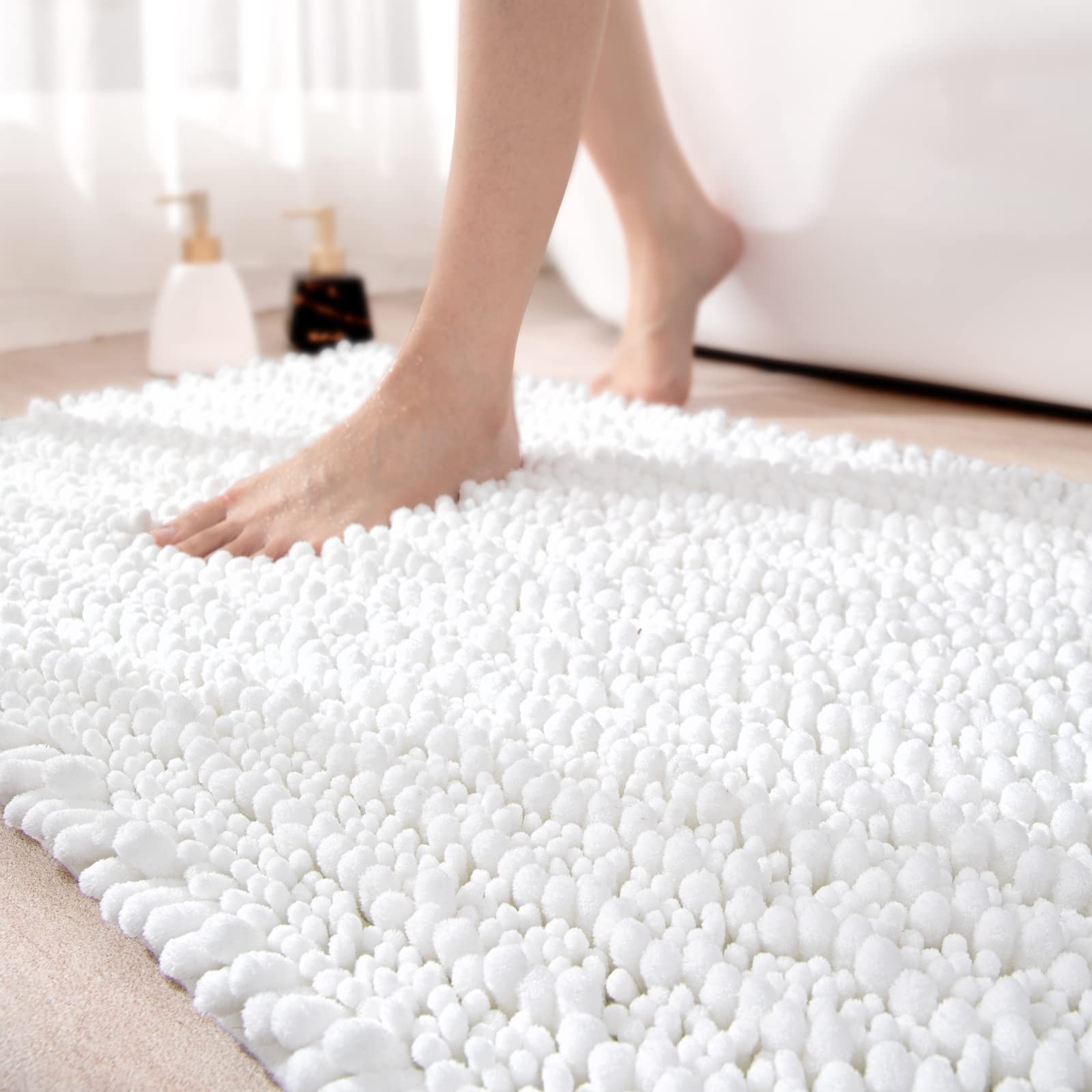DEXI Bathroom Rug 60 x 110 cm, Chenille bath mat non-slip, soft bath mat machine washable, super absorbent bath rug for bathtub, shower, and bathroom, White.