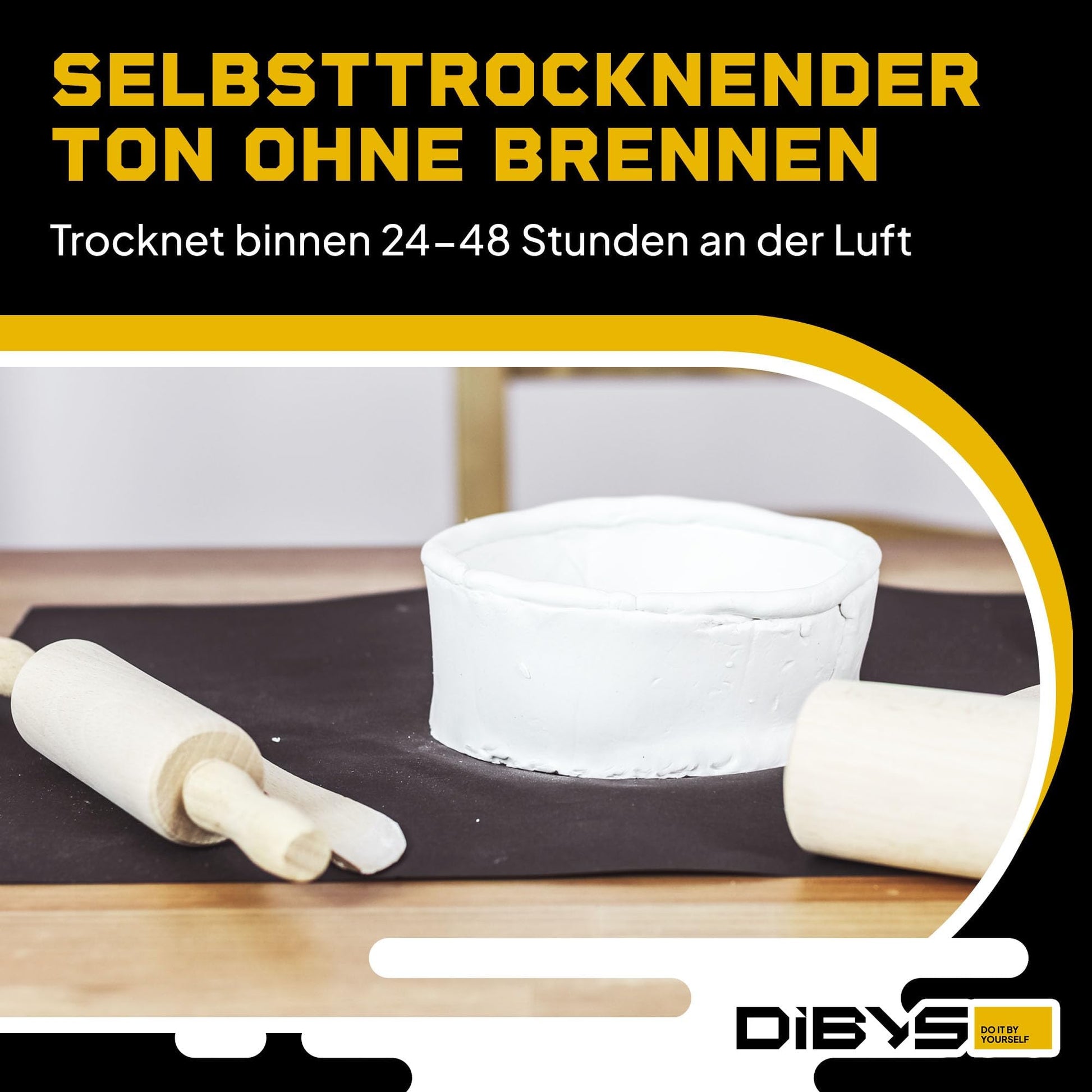 DIBYS Pottery Set for Home | Starter with Modeling Tools, Air Drying Clay in White, Colors & Brushes | DIY Pottery for Kids & Adults | Creative | Gift Ideas