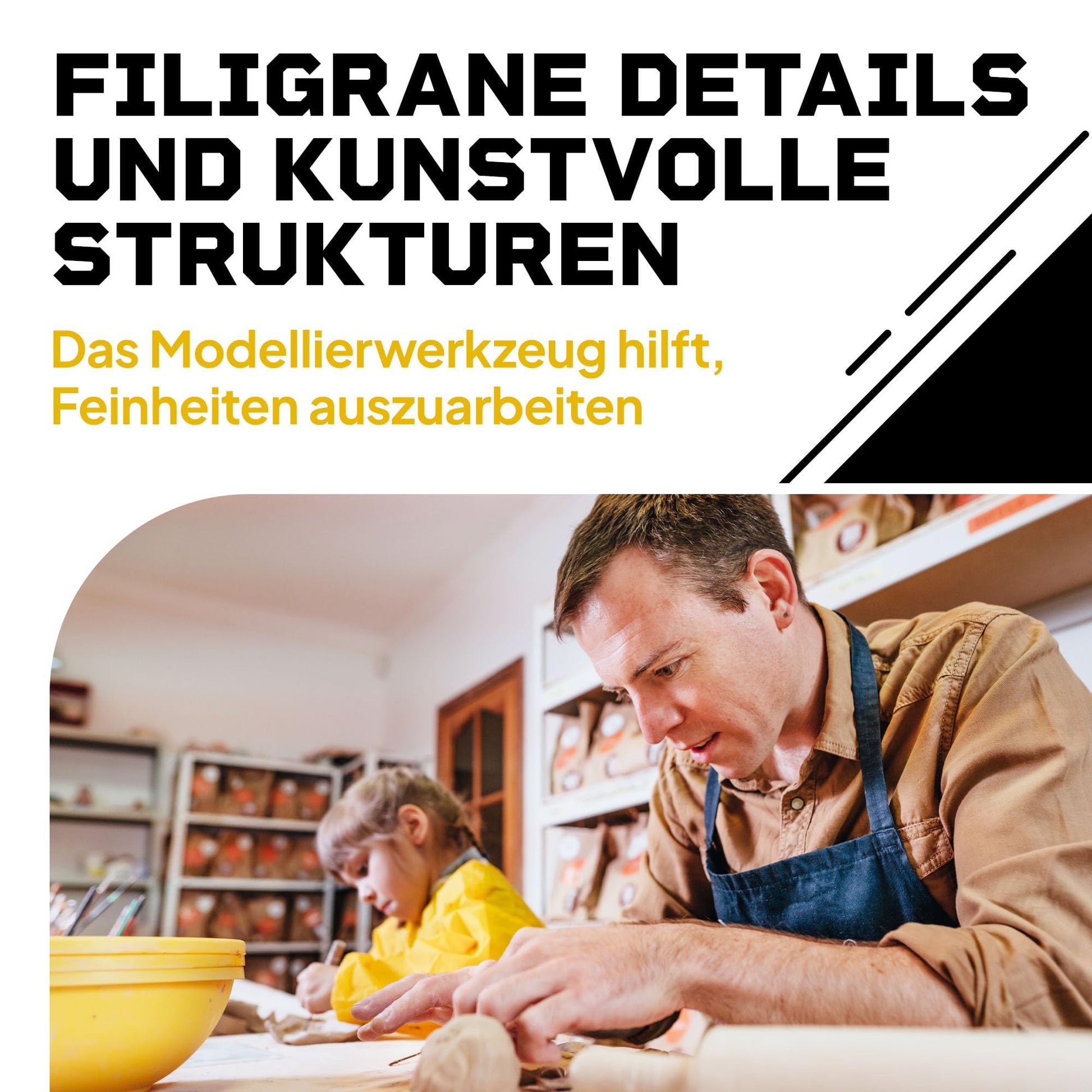 ["🧡 FOR CHILDREN & ADULTS: The easily moldable modeling clay allows you to unleash your imagination and create unique artworks, whether for home decoration or as a personal gift for friends and family. This clay set offers endless possibilities for all age groups!","🧡 BE CREATIVE: With the modeling tools, intricate details can be easily shaped and artistic creations can come to life! How about a vase, a sculpture, or a figurine? Or do you have your own ideas?","🧡 AIR-DRYING CLAY WITHOUT FIRING: The pottery clay is self-drying. So the clay does not need to be fired after sculpting, but dries quickly within 24-48 hrs. Once the artworks are hardened, they can be painted with the included acrylic paints and brushes as desired. There are no limits to creativity!","🧡 BEAUTIFUL GIFT: Whether for a birthday, Christmas, or as a gift, our original craft set is a creative gift idea for crafters of all ages!","🧡 STARTER SET: The package includes 6x paintbrushes, 1x mixing palette, acrylic paint (15x 6 ml), 1x spray bottle, loop tool, ribbon tool, needle tool, potter's rib, modeling tool, metal scraper, sponge, wire clay cutter, 2x white clay (2x 500 g), and the instructions."]