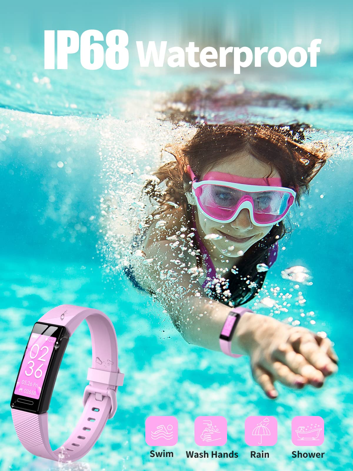 ["⭐【All-Day Activity Tracker】The children's fitness tracker records heart rate, sleep quality during the night, steps, distance counter, and calories burned, helping you track daily activities with real-time statistics. Connect the kids' fitness activity watch to your phone via Bluetooth. View more data in the H Band Lite app.","⭐【11 Sports Modes Waterproof Fitness Watch】The DIGEEHOT kids watch is waterproof to IP68 standards. It can protect against splashes, rain, and sweat. However, it is not recommended for use in hot water or seawater. 11 sports modes: Outdoor/Indoor Running, Outdoor/Indoor Walking, Hiking, Outdoor/Indoor Cycling, Stepper, Elliptical Trainer, Workout, Rowing Machine, Swimming.","⭐【Interchangeable Strap】The fitness tracker comes with an interchangeable strap (purple, pink). With the slim and adjustable design of the strap, it is suitable for children or adults with slim wrists. Made of flexible, durable TPU material, it does NOT contain harmful substances.","⭐【Battery Life & Compatibility】The DIGEEHOT kids fitness watch for Android and iOS phones is equipped with a 105mAh lithium battery, safe and efficient, and can be used for 5 days after 2 hours of charging. Our fitness watch for boys and girls is compatible with Bluetooth 4.0 or higher and most smartphones with iOS 8.0 and Android 4.0 or higher.","⭐【More Features】Sleep monitor, call and message reminder, camera shutter control, female health, alarm setting, event reminder, stopwatch, timer, movement reminder, wrist-to-illuminate screen, phone finder, adjustable brightness, change background, and more. Download the free "H Band Lite" app, install it, and discover even more features."]