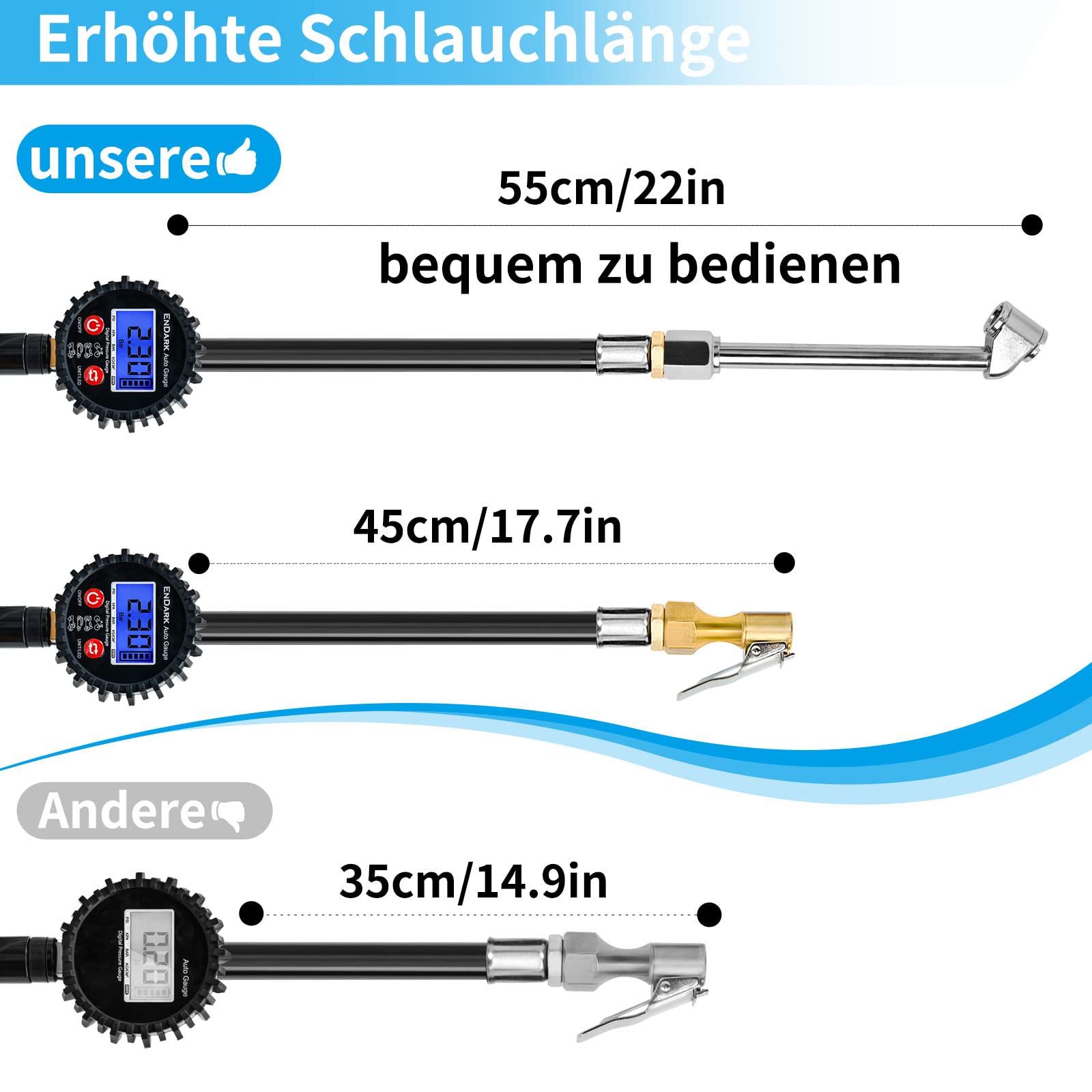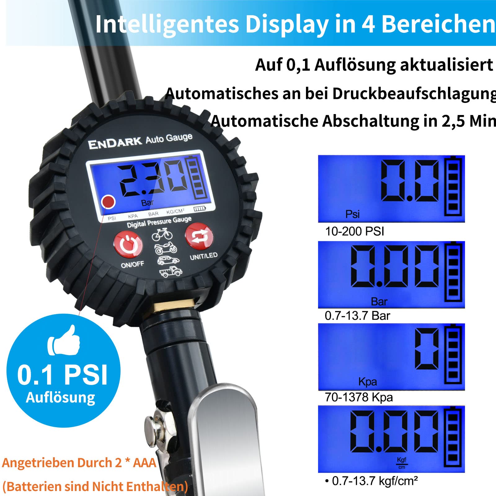Digital tire inflator gauge air pressure tire pressure gauge - ENDARK air pressure gauge digital tire pressure meter & gauge 200 Psi tire pressure filling device for car, bicycle, truck, motorcycle
