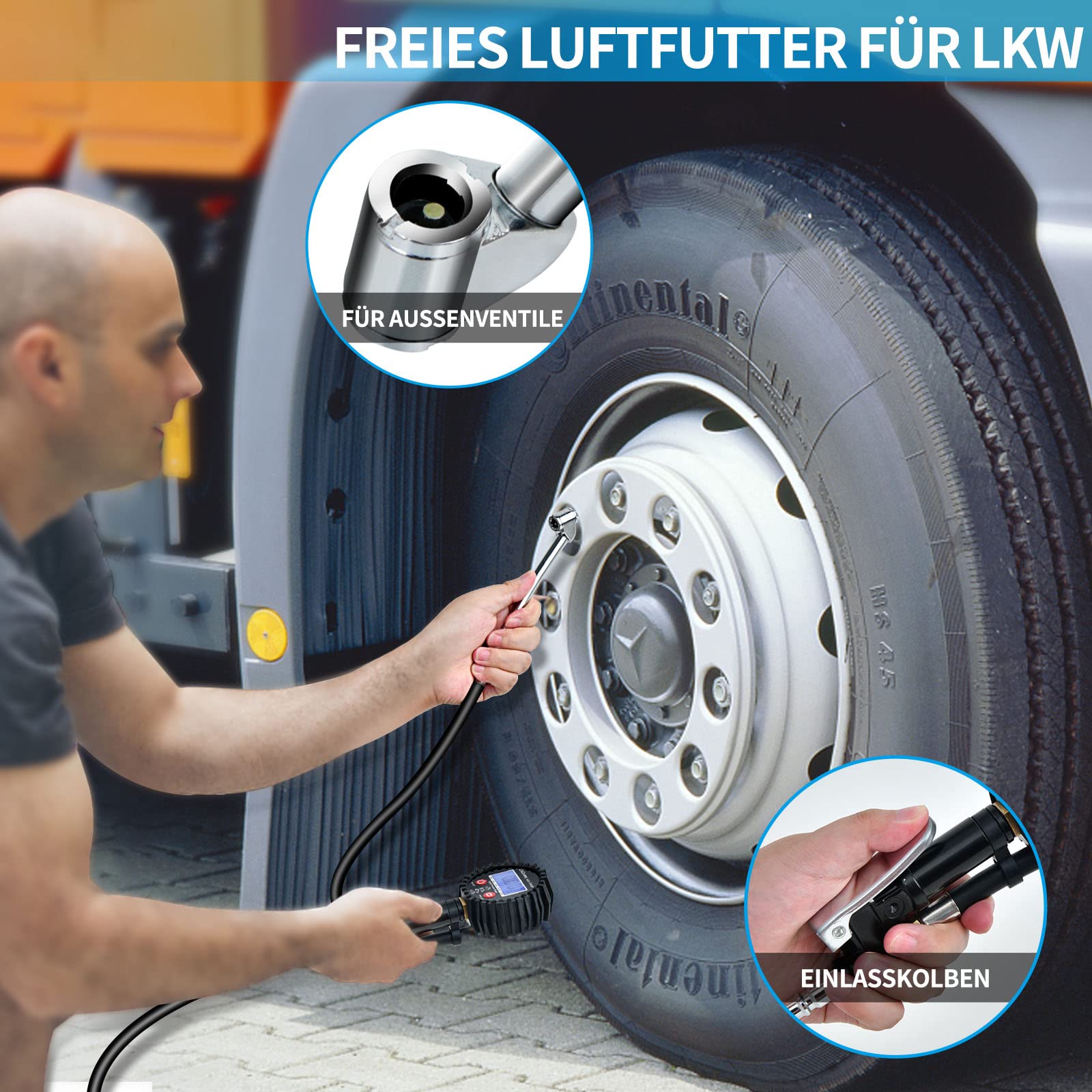 Increased safety air tire inflator gun - Bright digital blue LCD screen with backlight makes tire pressure tester easy to read at all times, especially in poor or dark conditions. The tire pressure tester makes it possible to check tire pressure and keep your car tires safe without having to go to the gas station, reducing the risk of accidents and lowering fuel costs. Air pressure gauge with inflator, necessary spare parts for travel.