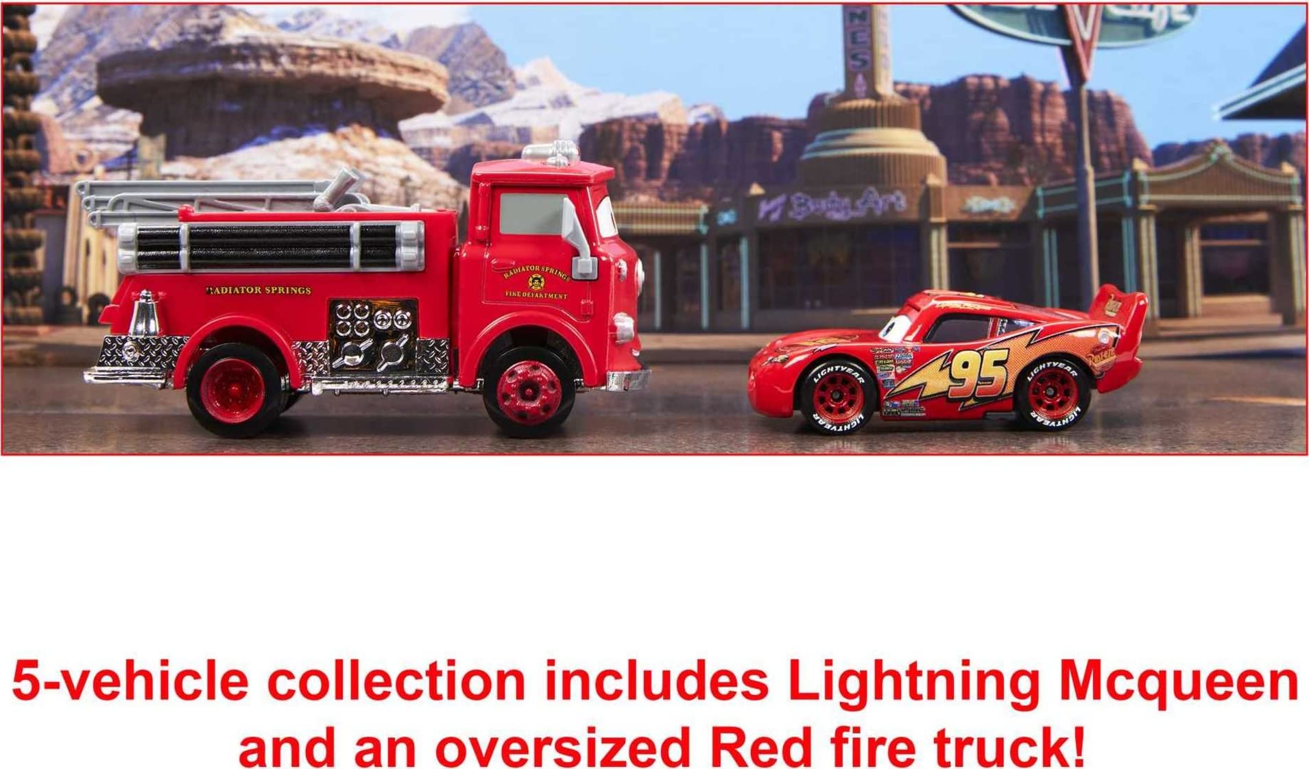Disney Pixar Cars HFN81 - Collection of 5 vehicles, set of 4 character vehicles and 1 fire truck Red, inspired by Radiator Springs, gift for collecting for children and fans aged 3 years and up.
